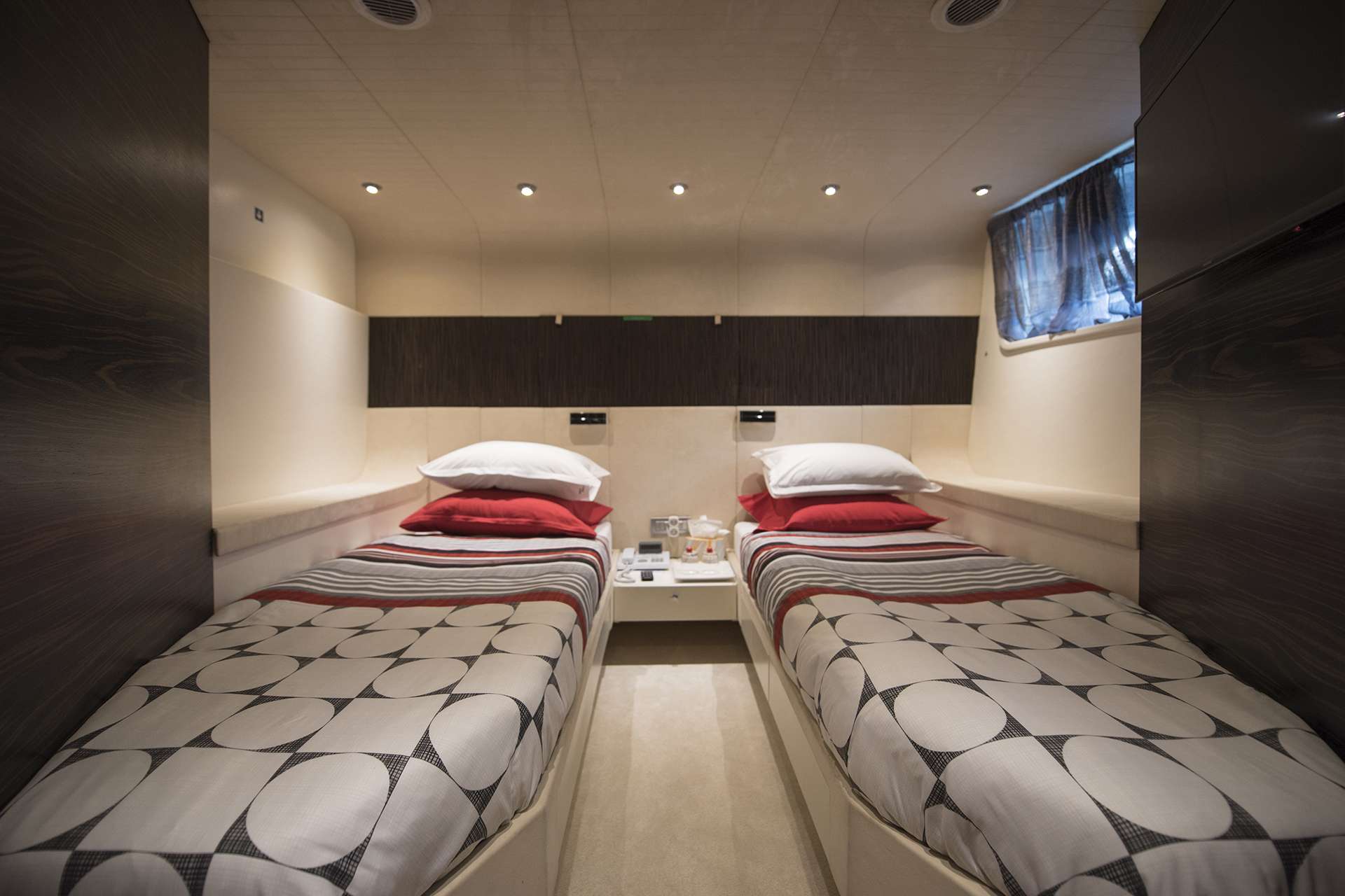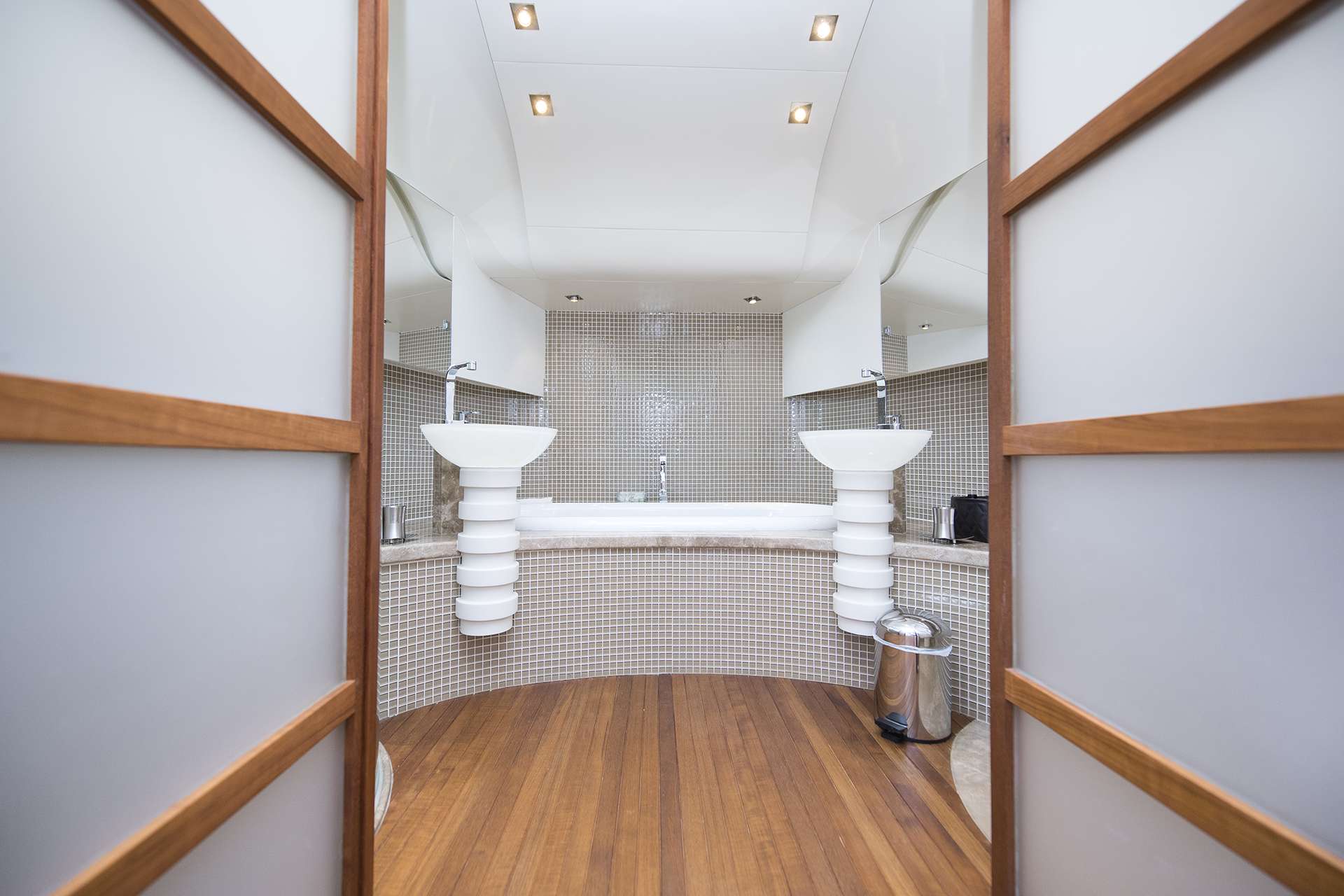 One Blue's interior layout sleeps up to 12 guests in 6 rooms, including a master suite, 1 VIP stateroom, 2 double cabins and 2 twin cabins. She is also capable of carrying up to 6 crew onboard to ensure a relaxed luxury yacht experience.