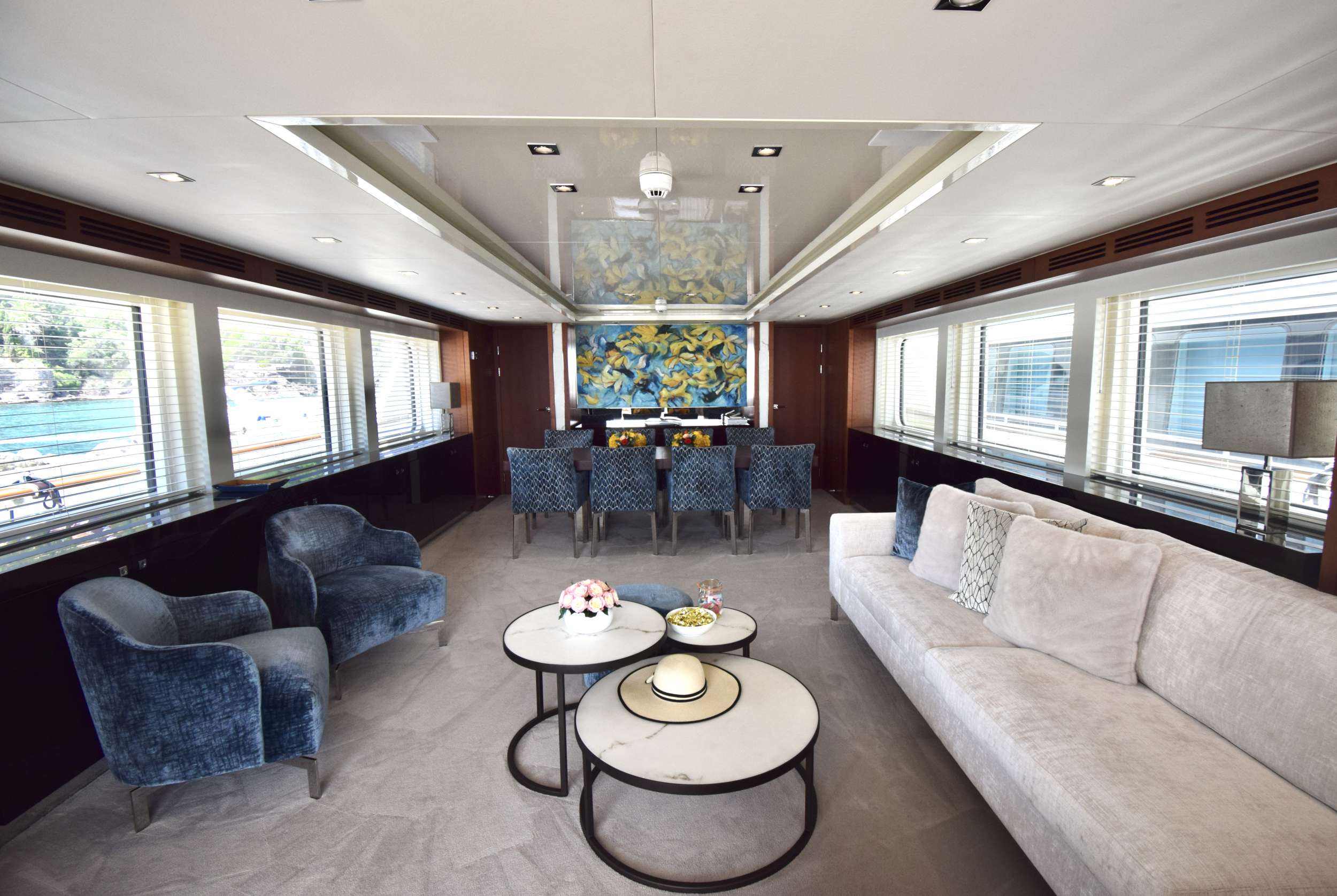 Introducing Orizzonte, the extraordinary 30-meter custom Dutch-built yacht crafted by Vahali in 2020. Elegance flows through each detail of the yacht, gently bouncing off the waves to sweep you away on an enchanting journey from the picturesque southern French archipelago to the charming foothills of Italy. From the outset, Orizzonte captivates with her classic design that appeals to those seeking a perfect blend of comfort and sophistication. Ideal for families or friends, every voyage promises a beautiful experience, whether you're sunbathing on the expansive bow, sharing laughter on the spacious flybridge, or relishing intimate dinners under the stars at a secluded table on the stern. Venture into the crisp waters from the swim platform for a refreshing escape, or continue the excitement with a plethora of water toys, including a jet ski, seabob, water skis, and snorkeling gear, ensuring your days are filled with exhilarating moments. As an extra touch of maritime indulgence, Orizzonte offers the unique experience of having her own fishing gear onboard. Delight in the thrill of catching your own dinner in the azure waters, and let the skilled chef transform your freshly caught fish into a culinary masterpiece, elevating your journey with a truly personalized and delectable dining experience at sea. As the sun sets, step inside to discover a world of sophisticated elegance. The interior seamlessly combines varied textiles, rich dark woods, and a light-hued ceiling, creating an inviting and exclusive atmosphere. The lounge, with the spacious dining setup and cozy sofa cluster facing a TV, is the perfect retreat for unwinding. Each cabin, accommodating 8 guests across 1 master, 2 VIPs, and 1 double cabin, exudes warmth, luxury, and ample space. The bathrooms, adorned with stone tiles, glass shower doors, and subtle silver details, breathe timeless sophistication. Embark on sun-drenched days exploring enchanting destinations along the southern coasts of France and Italy, guided by Orizzonte. Let her be the vessel that crafts memories of a lifetime for your unforgettable adventure.