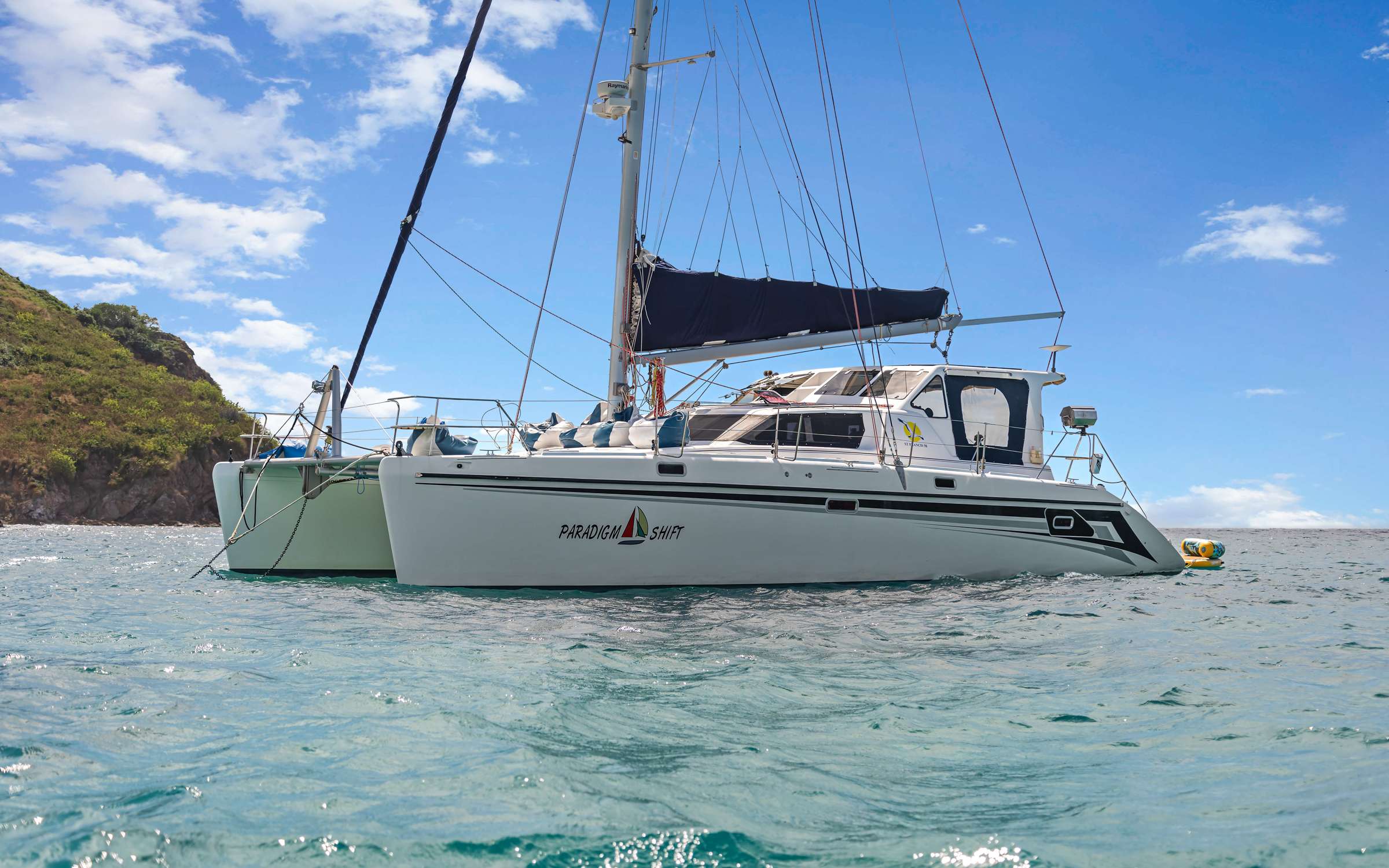 PARADIGM SHIFT is a luxurious 50-foot 2011 St. Francis catamaran with three guest suites (2 queen's and 1 doubles) each with a private en-suite head (electric toilet, separate showers and vanity/sink). The main salon has a fully applianced galley plus full dining area with flat screen TV for watching movies. The spacious cockpit offers lots of the same for lounging and dining alfresco. The huge forward deck and trampolines can accommodate all guests with sunbathing room to spare. Ideal for two or three couples or couples with children. Lots of water toys, 3 SUP boards, Crystal Clear 2 person kayak, Tube, kneeboards, 14 ft aluminum AB Dinghy with 40 hp Honda.