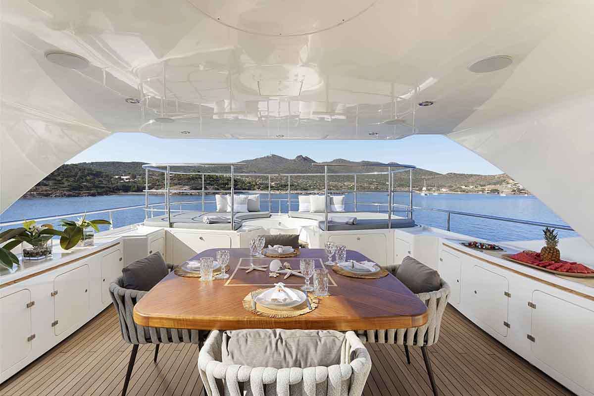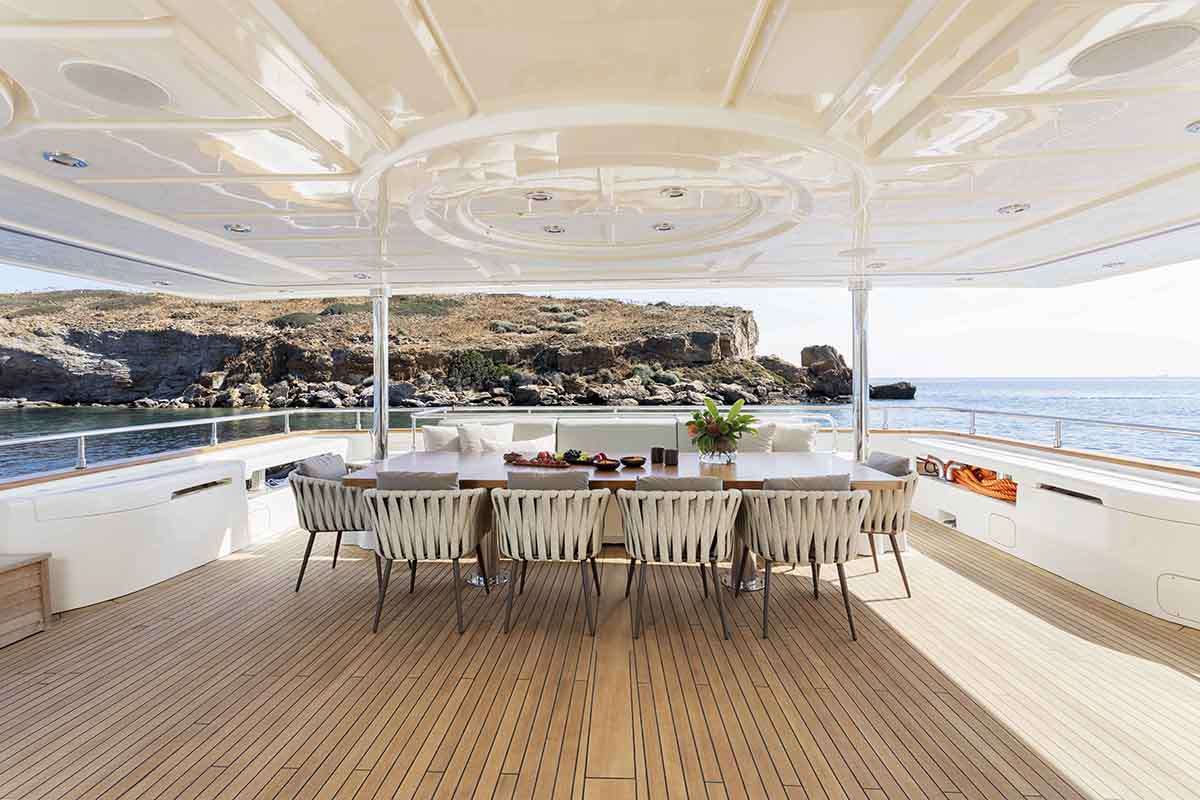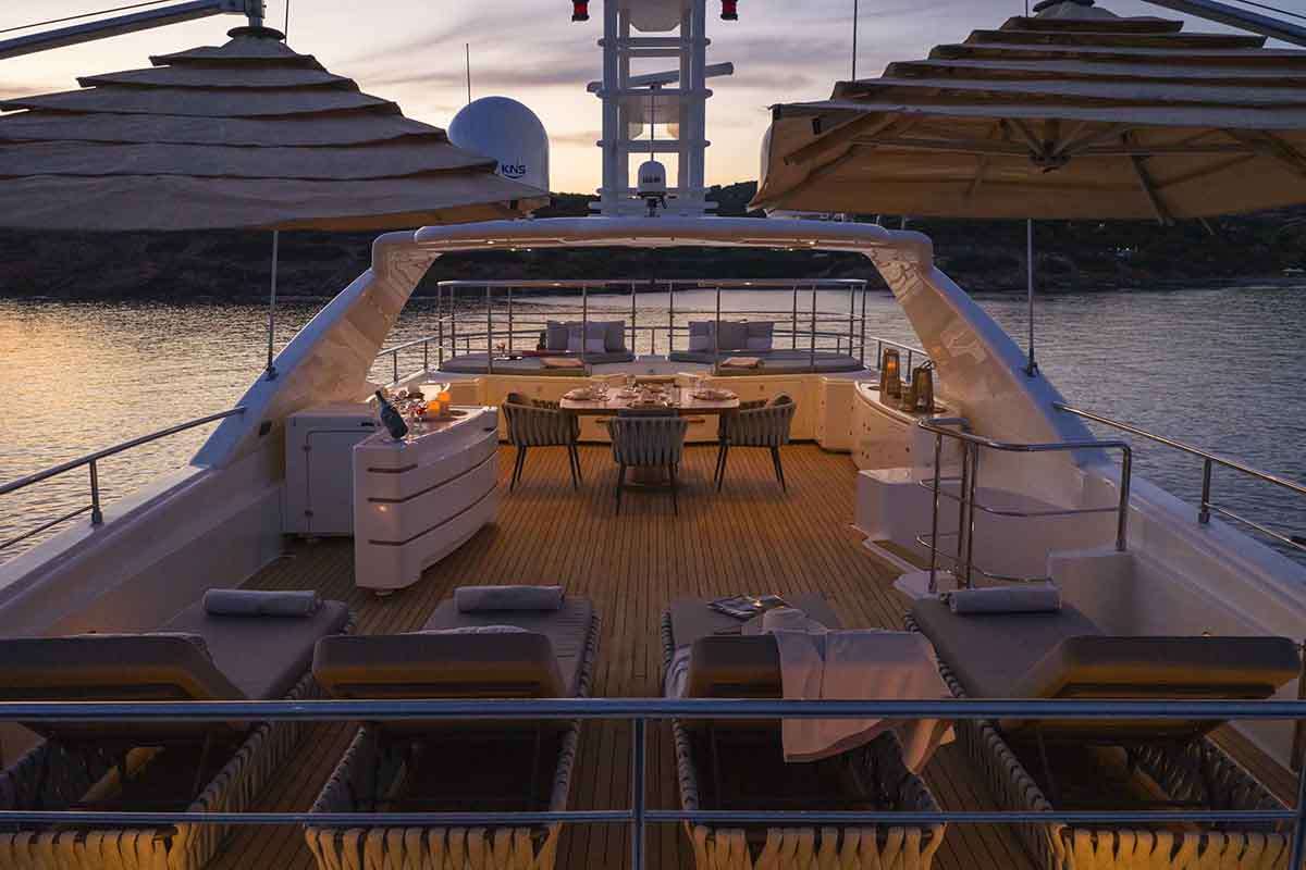 Refit/Maintenance Details: - Total interior refit at minimal modern style - Total Refit of the Beach Club - New teak wooden Aft Deck Dining Table - New audio-visual equipment throughout - New Glassware, New bed linen & towels, New decorative items - New GYM equipment - New Water Toys - Various other upgrades