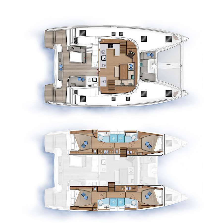 Sails: Electric winch Lazy bag Lazy jacks Winch Navigation: Autopilot - B&G Autopilot System + Pilot/Wireless Remote Controller GPS chart plotter - On Helm Station, B&G Zeus 3S Glass Helm ZM Display 16″ Logge/Lot/Speed/Wind - B&G Sensors for wind, speed, depth, temperature Radar - B&G Broadband 4G™ Tablet - Including data projector Safety: Life belts (Safety harness) Life jackets Liferaft RIB - 3,4m with 20 HP (operated by Skipper) Safety equipment VHF radio - B&G VHF + AIS Yacht electrics: Air Conditioning - In all cabins Bilge pump - Electric Generator - Diesel 11kVA Heating - in all cabins Inverter - 240V / 2000VA + plug in all cabins Watermaker - desalinator - 100L/H 220V/12V Deck: Cockpit/stern, outside shower - Hot water Davit - Extra for electrical assistance (flatwinder) for dinghy hoist system Flybridge Teak deck Teak table Galley: Coffee machine 2 x Gas bottles - 13 kg Ice maker Kitchen utensils (Galley equipment, cutlery) Microwave 3 x Refrigerator - including freezer Interior: Bed linen - Hilton standard 4 x Electric toilet Towels - Hilton standard Entertainment: FUSION sound system - Fusion RA70N (USB/Bluetooth + AM/FM) + 6 loudspeakers in salon, cockpit and fly Fishing equipment 2 x SEA-DOO underwater scooter - snorkeling up to 30m depth Snorkeling equipment - Mask + flippers 2 x Stand up paddle (SUP) 2 x SwimWays Spring Floats 4 x Underwater lights Water skis - jobe allegre 67" Water toys - Jobe Omnia multifunctional water toy (kneeboard, ski, wakeskate/board and wakesurfer) Wi-Fi Internet - 4 LTE (data FUP 75 GB) + WiFi (AC) on board Other: Beach towel - Hilton standard