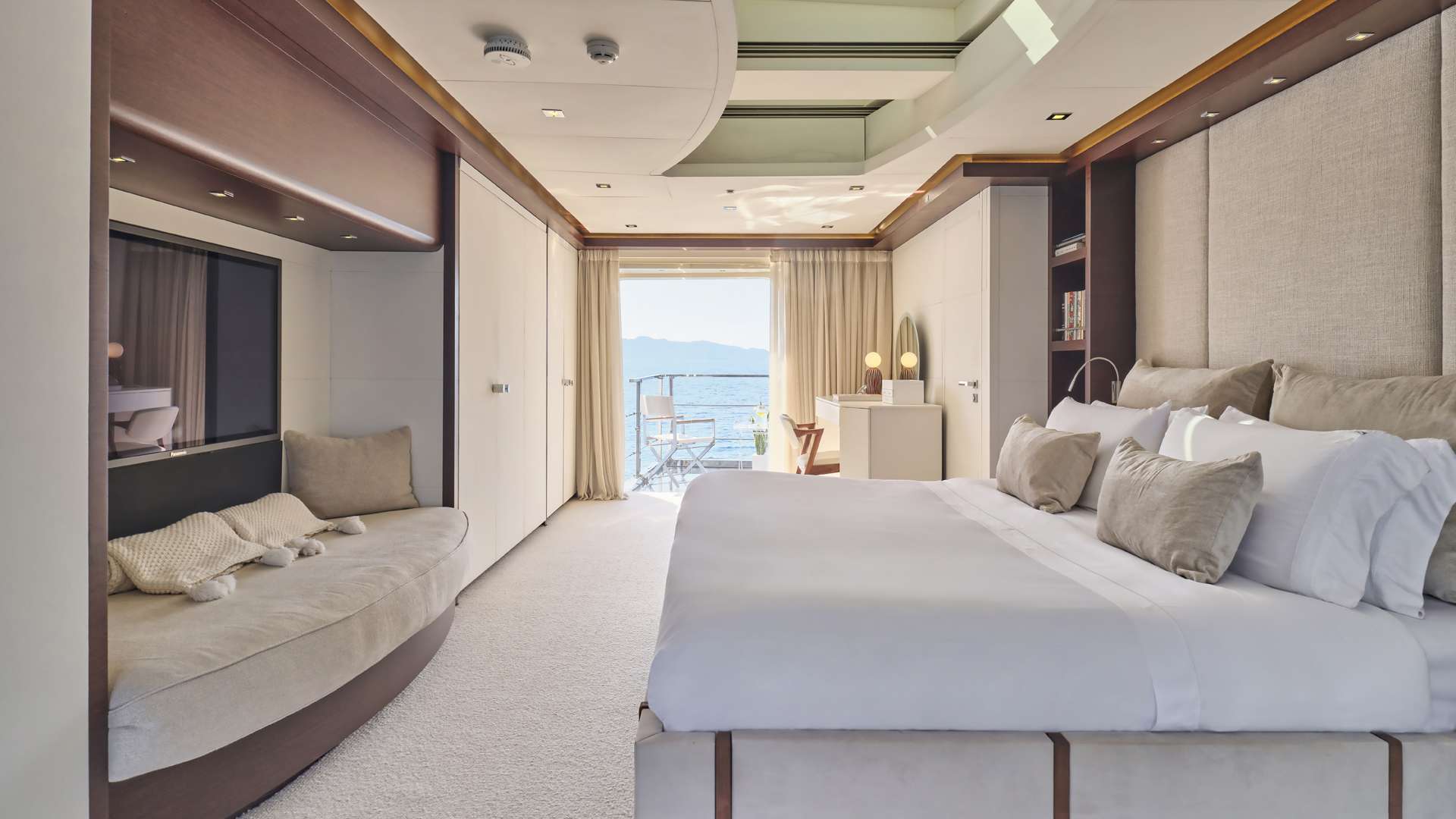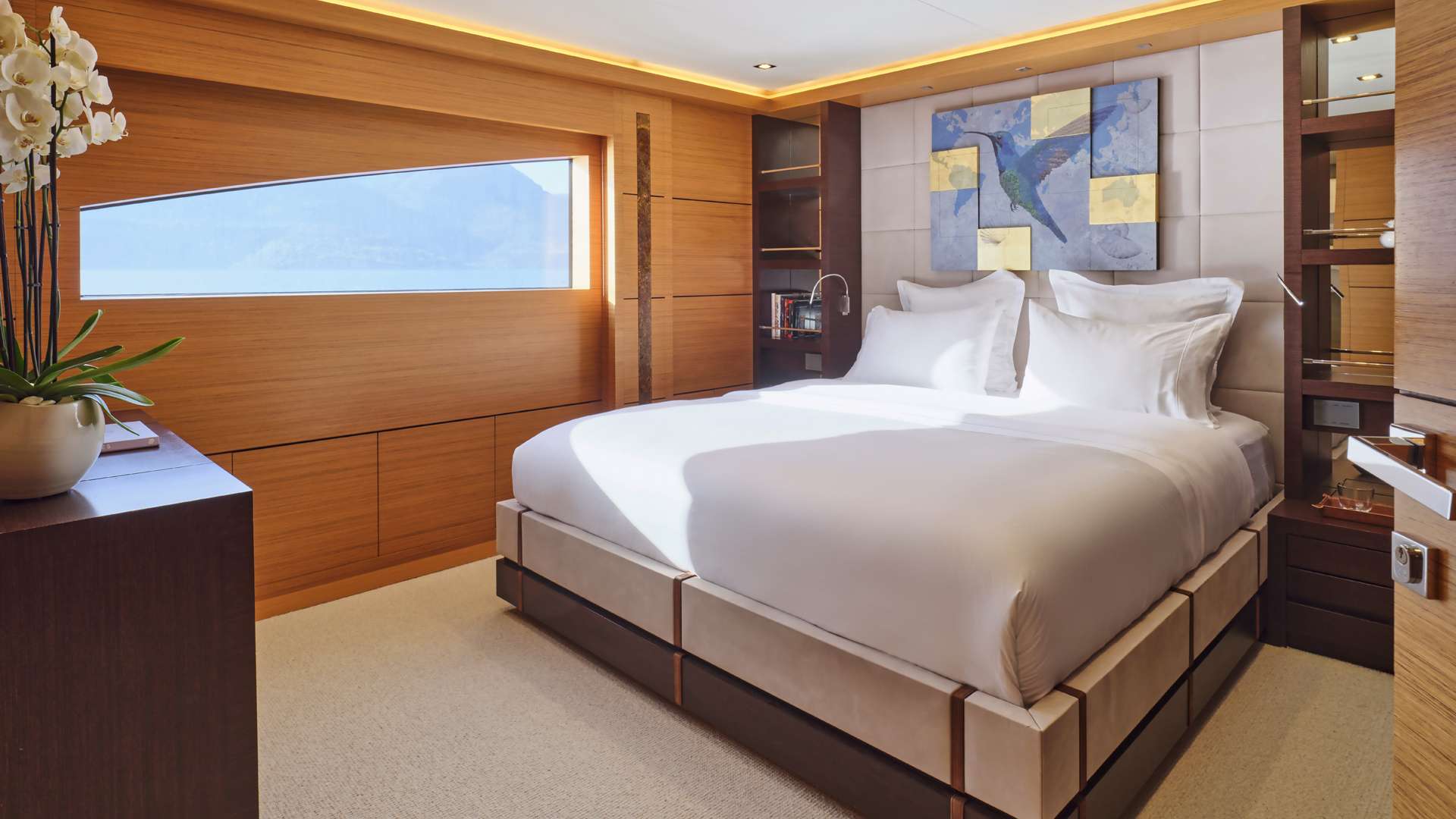 1 x Master Suite on main deck with kind size bed 1 x VIP Suite on upper deck with queen size bed 3 x Double Staterooms lower deck with queen size bed 1 x Twin Stateroom on lower deck with two single beds All with en-suite facilities
