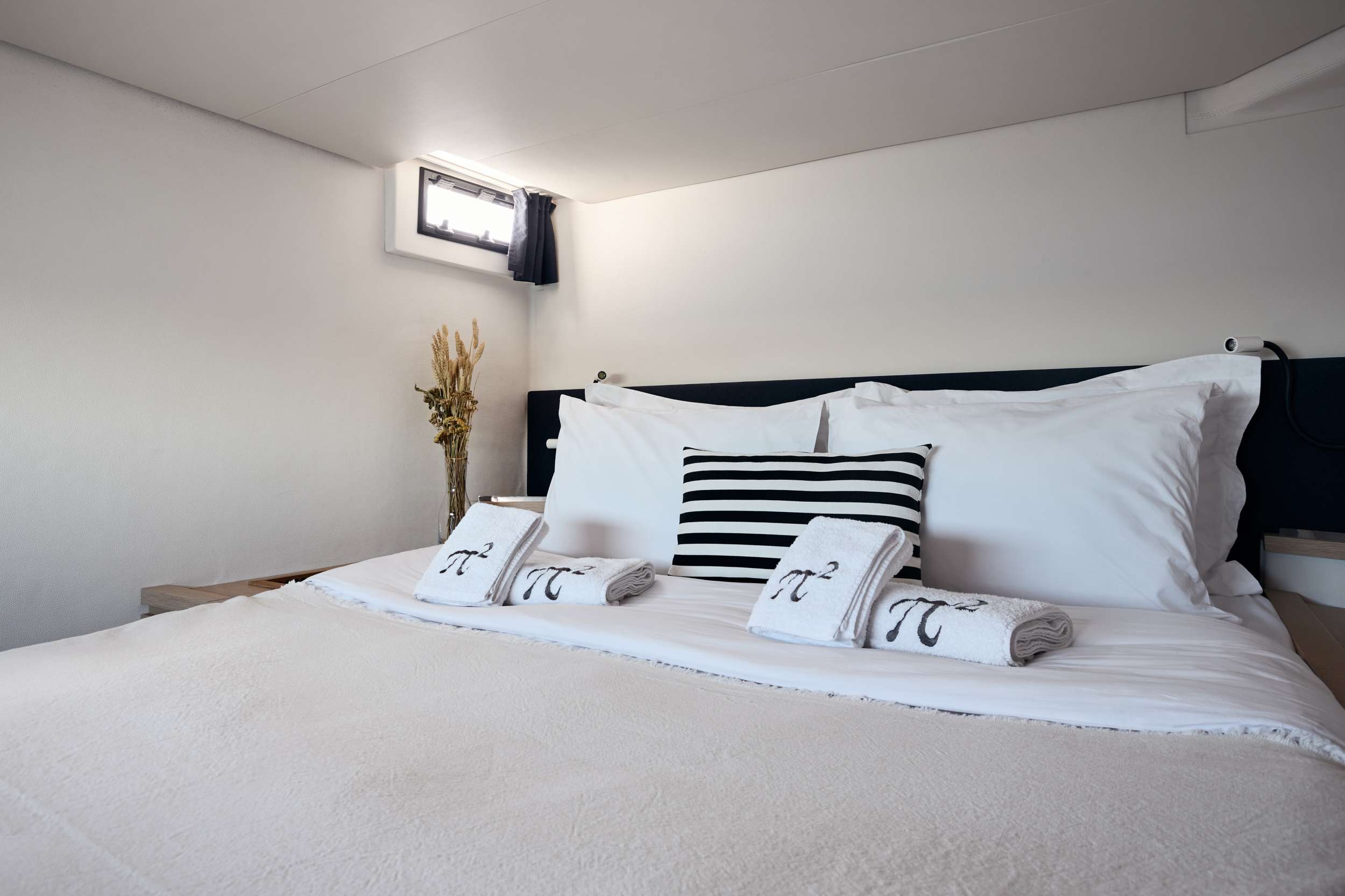 Pi 2 a Saba 50 continues to garner critical acclaim throughout the world for its distinctive lines, sophisticated styling, choice of spacious living areas, and outstanding offshore performance. Voted Best Boat, this sailing yacht is the perfect vessel on which to share the joy of exploring the most beautiful destinations with those you love. With an exterior profile that reflects the elegant and innovative philosophies of her designers, Pi 2 turns heads wherever she goes. A generous lounge deck delivers a bold high-performance profile. While guests can also choose to unwind in the spacious cockpit or on the magnificent sun lounger at the fore, which provides an indulgent all-weather retreat adjacent to concealed storage lockers. The boat's design provides seamless movement and communication between the cockpit, helm station and lounge deck, while the incredible space in the saloon evokes the ambience traditionally found only on much larger yachts.