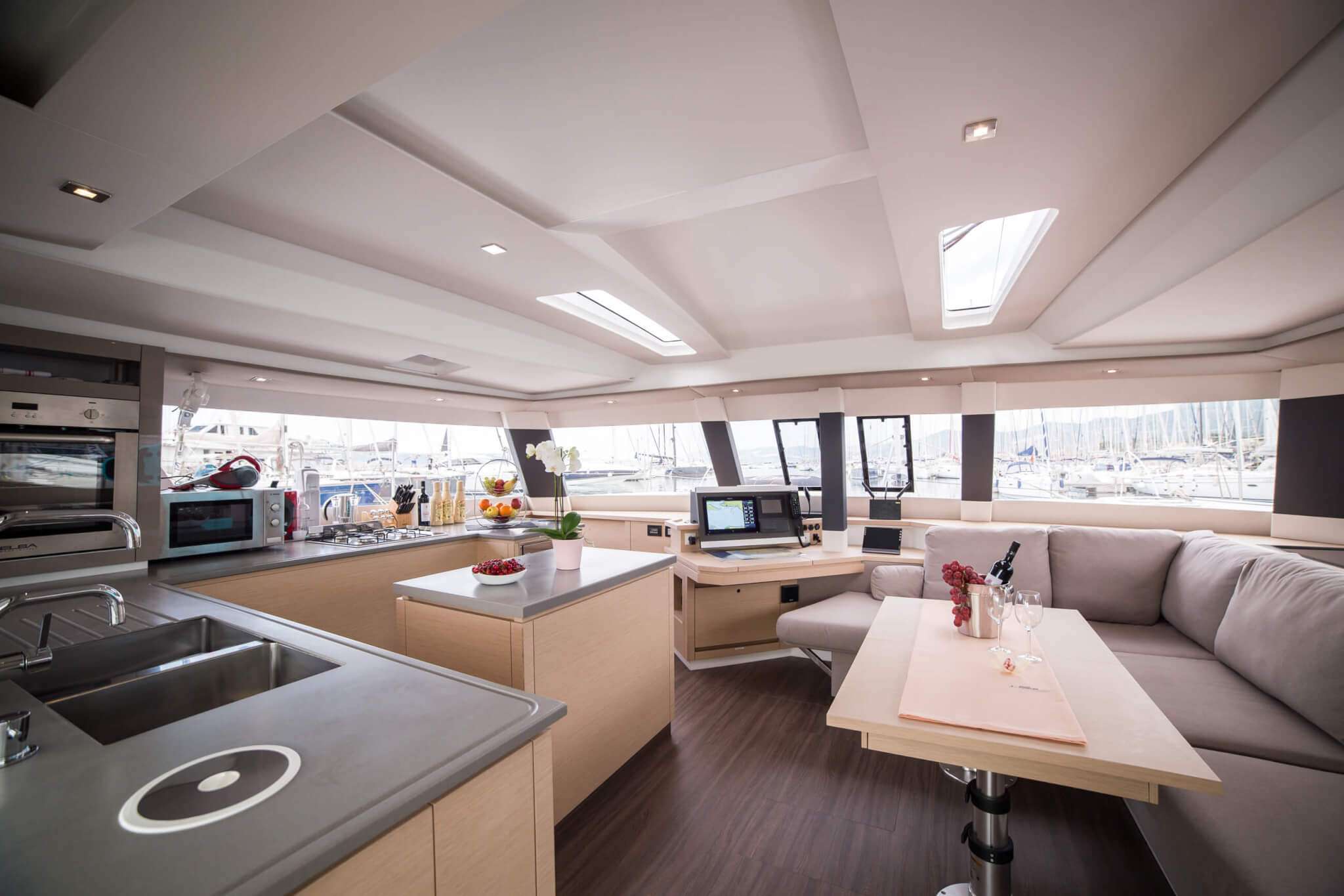 PRINCESS APHRODITE is one of the most luxurious and modern catamarans on the Adriatic Sea in size category 50 feet, managed by enthusiastic Slovak owners. In his category belongs to TOP 3 best catamarans in Croatia available for charter. In hotel terminology, this catamaran is a floating 5***** hotel. This elegant beauty on the water and with high levels of performance, also offers a splendid place to relax with its carefully crafted Lounge deck. This is integrated into the design process from the very beginning in order to give the craft its beautiful lines as well as the best possible levels of comfort, both at sea and at mooring. Motion on board has been designed to ensure privacy between saloon, front or rear deck or Lounge deck on the top floor. Princess Aphrodite is ideal for multigeneration families, students and young people which wish to experience unforgettable sailing party. Alternatively it can perfectly fit for business partners arranging teambuilding for their clients and employees. To bring you feeling of exclusivity, uniqueness and novelty, we performed for you complete reconstruction of interior and exterior early 2025. S/Y PRINCESS APHRODITE FOUNTAINE PAJOT - SABA 50 6+1 BUILT 2017 / LOA 50FT 10 PAX / 5 CABINS 2 CREW/ 1 CABIN + 1 FRONT PEAK BASED IN TROGIR, CROATIA