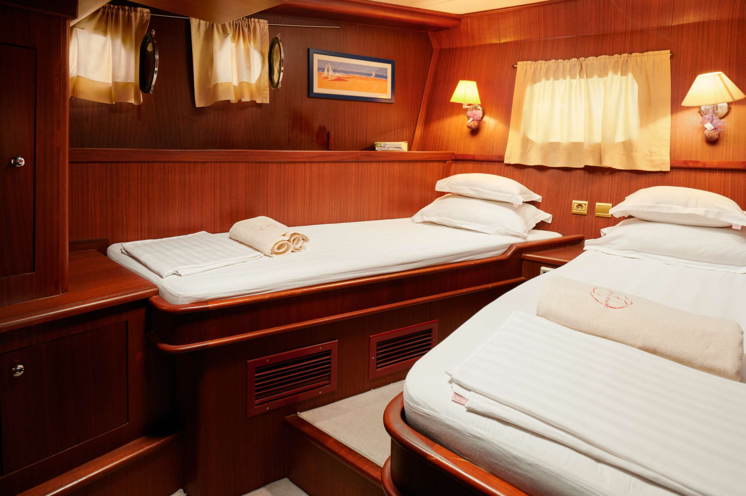 Queen of Adriatic has 6 en-suite cabins (2 double, 2 twin and 2 double cabins with extra bed) that can accommodate up to 14 persons.