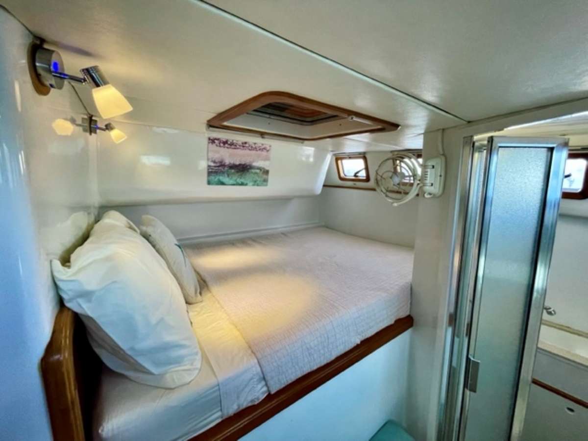 Quest is a custom-built 1991 Alex Simonis catamaran that is equally at home voyaging through open ocean swell or being an adventure platform in a secluded bay. She is a drop-dead gorgeous boat that turns heads wherever she goes. Her airy interior is inviting, with plenty of light to compliment the grain of the well-appointed wood. Her staterooms exhibit all the comforts of home, with plush bedding and cozy nooks that make it hard to get up in the morning. With ample seating around tables in the salon and cockpit, Quest is the perfect place to relax, socialize, or party. There is even space for yoga or launching a kite. Sailing remarkably well, Quest dances through the waves. She is a joy to sail, and brings smiles to the faces of even the most experienced sailors. She is also incredibly safe, making her the perfect boat for families and first-time sailors alike. Quest is truly a wonder to behold. She is a work of art, a dream come true, and an absolute joy to sail. If you are looking for an unforgettable sailing experience, then Quest is the boat for you.