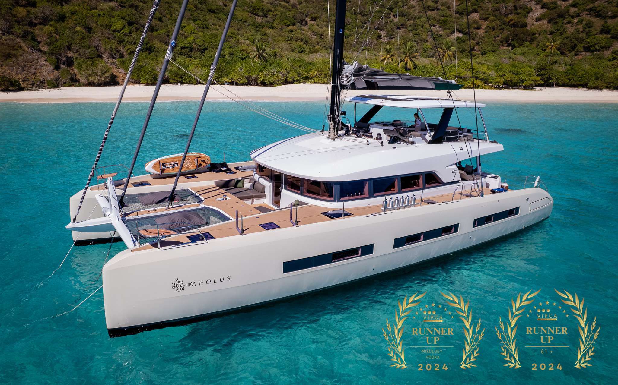Designed by naval architects Van Peteghem Lauriot Prévost (VPLP) in close collaboration with the Lagoon design office, the 620 offers innovative solutions that respond to the expectations of today's recreational sailors. Robustness, comfort, performance and a wide choice of facilities. Large central panoramic saloon, a shaded aft cockpit and sheltered flybridge. The ocean view with its 50 shades of blue is an integral part of the decor, the perfect getaway. Fully air-conditioned, its wooden interiors in beech harmoniously combine luxury, space and light. 1 master and 3 double cabins each equipped with a “King size" bed and private bathroom disposed around a huge lounge / kitchen. The heart of life on board, it offers its guests an unprecedented volume and space with a superb panoramic view of the sea. You will appreciate its large cockpit - ideal for an “al fresco" dinner - and its deck arrangements, an unparalleled relaxation area with large spaces reserved for sunbathing. Rêve2mer is a catamaran that is resolutely elegant and laid-back, offering the best in ocean cruises. The rear skirts offer easy access to the boat and allow you to practice all water sports or simply to take a dip in the crystal clear water around your anchorage. On board the Rêve2mer, you will be welcomed by a crew of 3 whose professionalism and finesse will make your cruise a unique adventure. Accustomed to sailing all the seas of the world, your captain, skipper and hostess will help you discover the treasures and flavours of each stopover. The beauty of the anchorages, the kindness of the inhabitants, the magic and the splendour of the islands will do the rest !