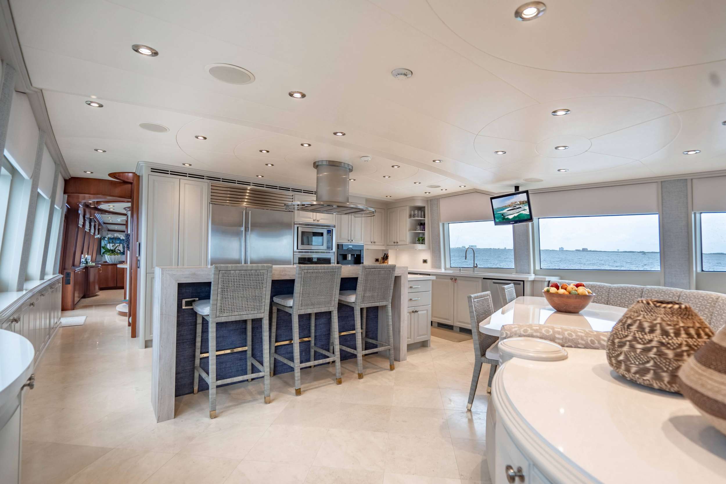 Motor Yacht RISK & REWARD is an exquisite and refined yacht celebrated for its streamlined design and exceptional performance on the water. It offers a perfect blend of comfort, style, and modern technology, making it a top choice for discerning charter enthusiasts. Onboard, RISK & REWARD features expansive living spaces designed to provide a luxurious and serene experience for its guests. The interior decor showcases a combination of premium materials, elegant furnishings, and state-of-the-art amenities. RISK & REWARD offers spacious lounges, multiple dining areas, and four beautifully appointed cabins to accommodate guests in comfort and privacy. A separate gym/workout room is available for those who prioritize fitness even while on holiday. RISK & REWARD offers diverse outdoor areas, with the sun deck standing out as a captivating entertainment hub, generous aft decks, and a Jacuzzi with a custom-made Sun Lounger, allowing guests to soak up the sun and enjoy stunning views. With the addition of a newly purchased 39' HCB, water activities will be a once-in-a-lifetime experience.
