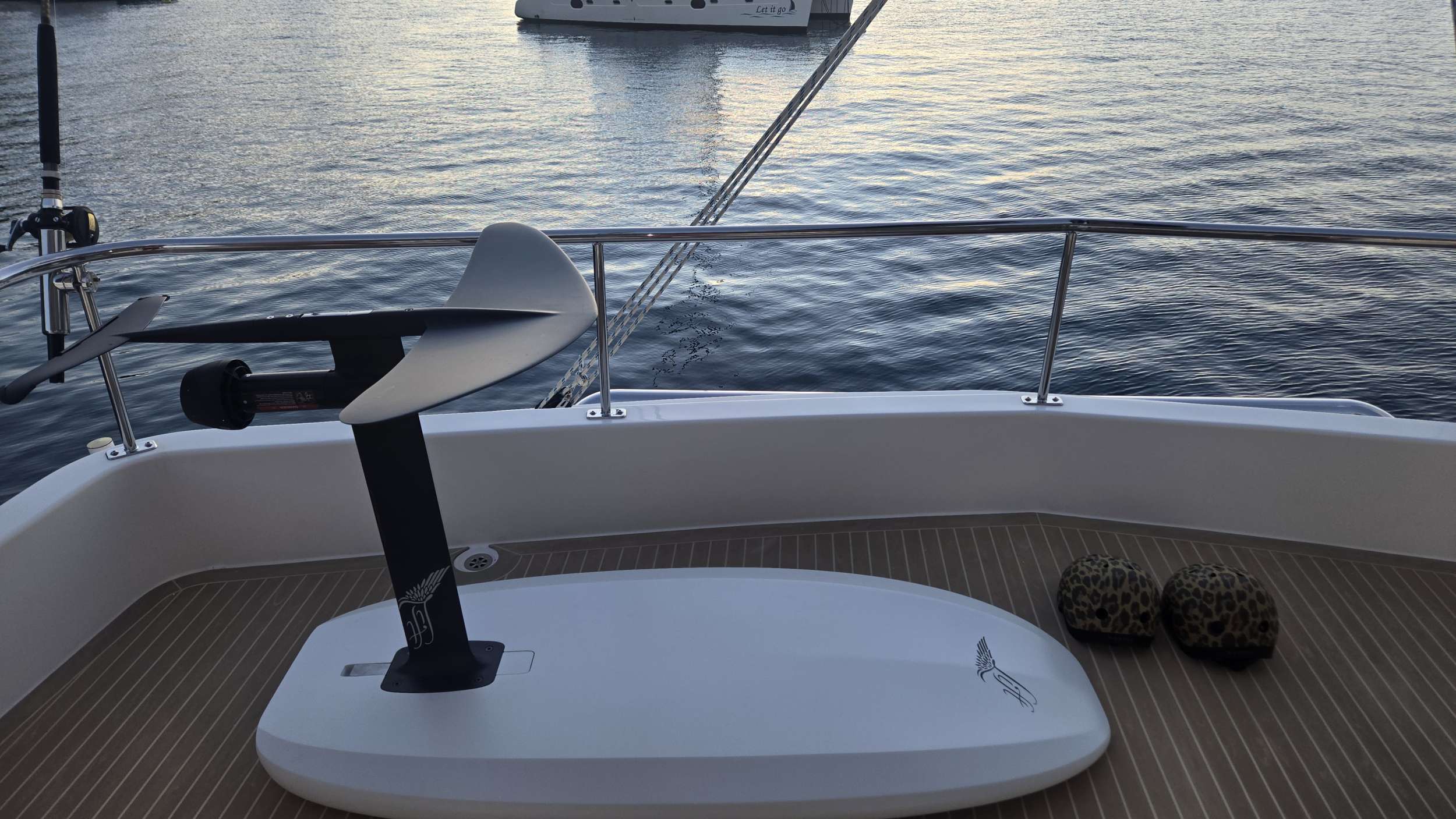 Ruby One features three queen-berth guest suites for discerning guests, and a bespoke extra-large main deck saloon. The saloon is fronted by a private forward lounging cockpit. There's also a large flybridge lounging and helm area above. Dining is either in the saloon, or al fresco on the aft deck.