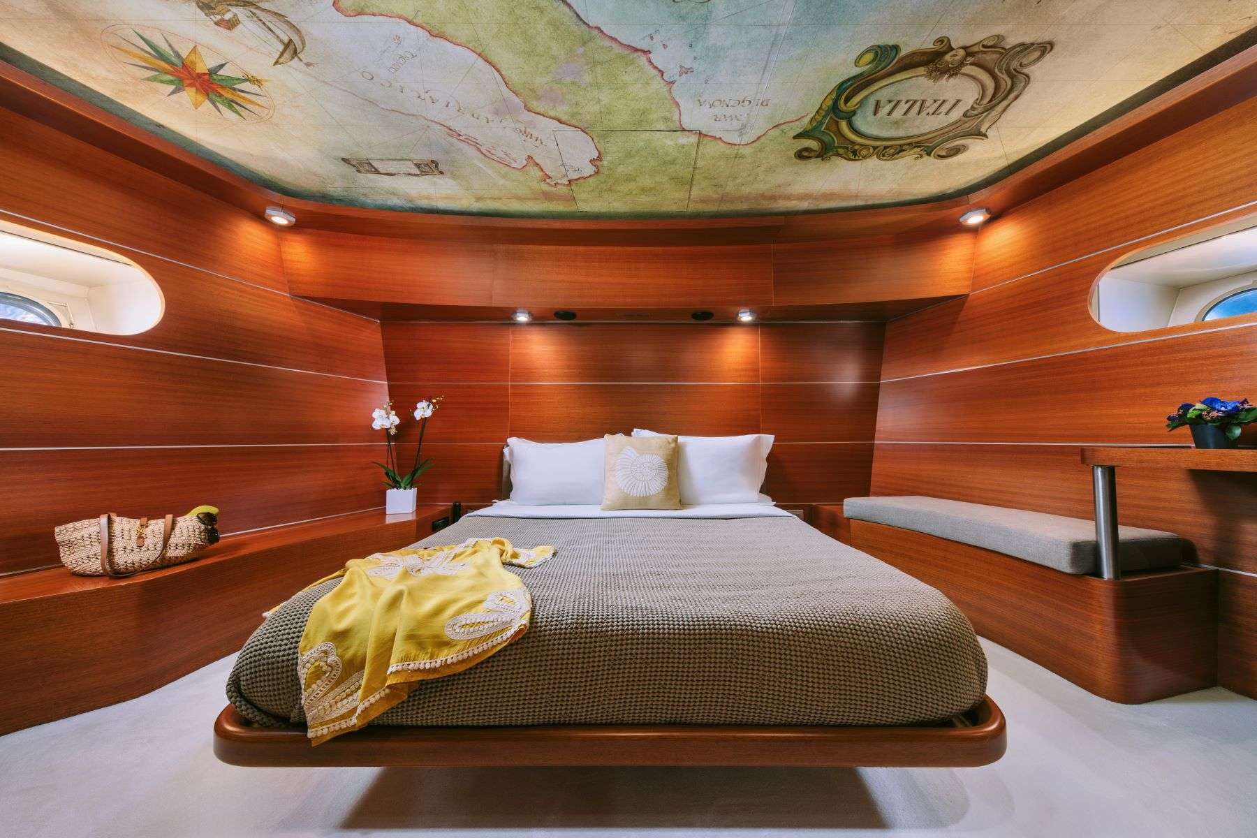 Master Cabin with a king-size bed on the Main Deck VIP Cabin with a king-size bed plus 2 Pullman berths 1 VIP Cabin with queen-size bed plus 2 Pullman berths 1 Double Cabin with double bed plus 1 child's Pullman berth 1 Triple Cabin with 3 twin beds All Cabins with en suite bathrooms