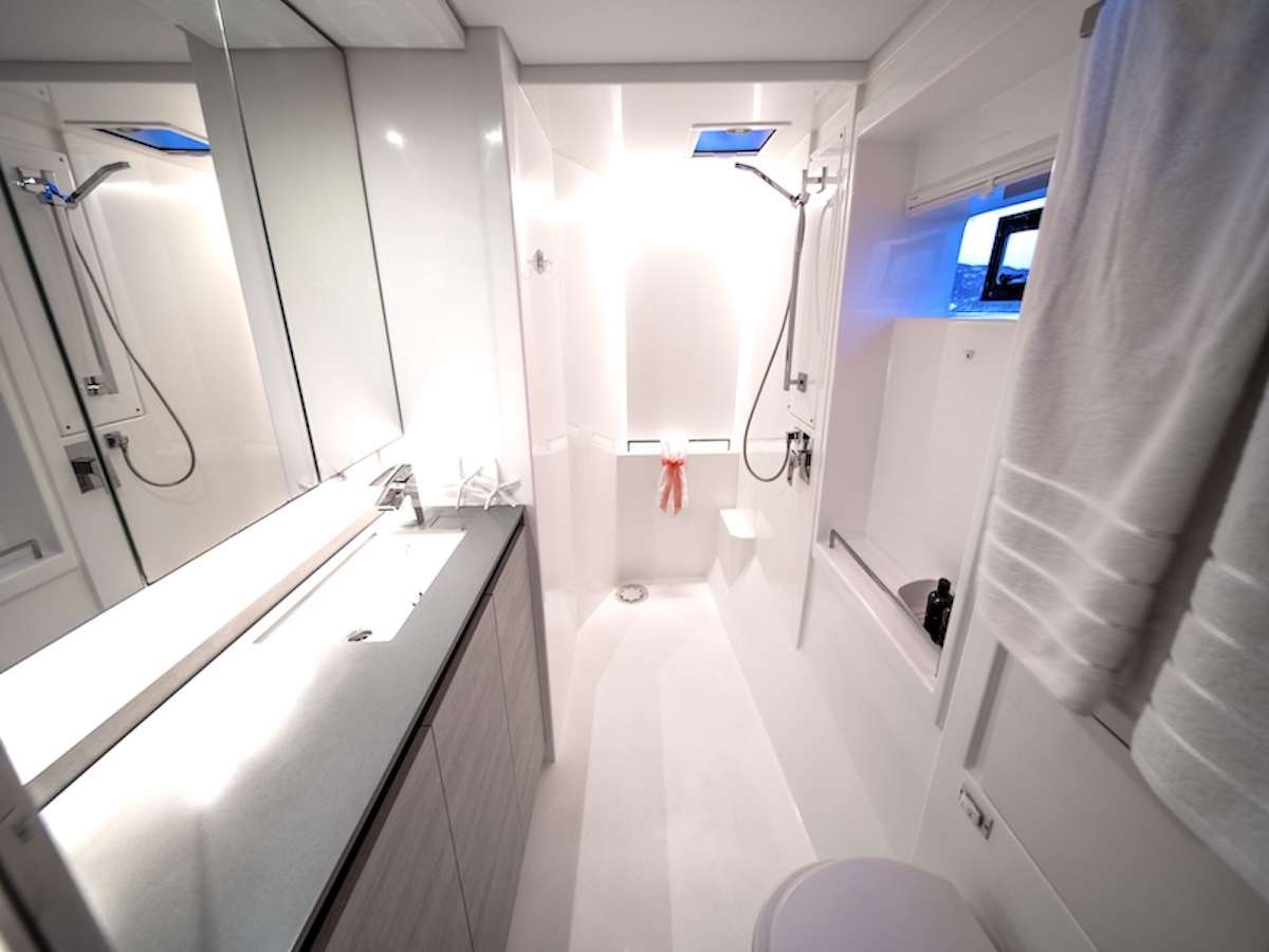 CHARTER BOAT OF THE YEAR - CRUISING WORLD Lounging around on the flybridge a few steps removed from the helm station on a breezy afternoon in the Virgin Islands is pretty darned enjoyable. In fact so is strolling about the boat and taking in the expansive views from numerous vantage points. On this boat, the great outdoors literally pour into the saloon and sleeping cabins thanks to the wall of glass and overhead skylight that spans the saloon.It offers one master cabin with queen berth, lounge area, en-suite bath and equipped with TV and two additional spacious queen cabins each with en-suite bath.