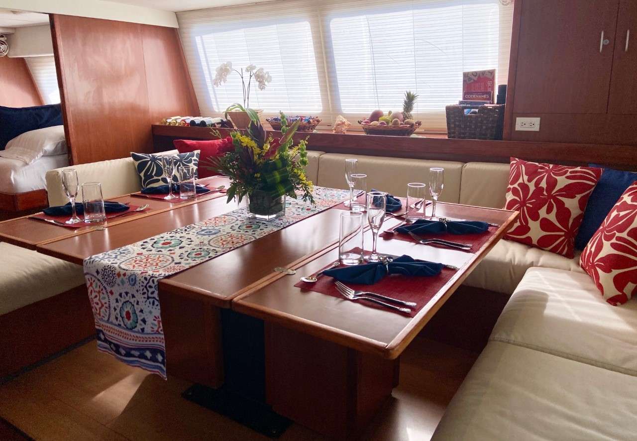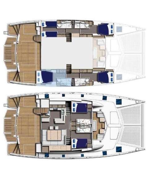 Sail crystal clear waters, snorkel coral reefs, explore uninhabited islands, or just relax to another beautiful sunset. Sea Esta offers the best in large, open decks and spaces for lounging, including a comfortable indoor salon, a breeze-filled flybridge with seating for 10, and the fun forward netted space to experience sailing firsthand. Sea Esta accommodates 10 guests in five staterooms. All rooms have en-suite bathrooms, air conditioning, and hanging closets. Part of the yachts unique layout includes two queen cabins on the main deck, each with access to a semi-private patio. The stairway down to the starboard side of the yacht brings you to two spacious queen cabins. The stairway down to the port side aft brings you to the fifth cabin which offers two twin beds. This room is excellent for siblings, teenagers, friends, or adults who prefer their own bed. *Crew occupy the forward queen cabin on port side, but can relocate to the double twin cabin upon request. Please give advanced notice to your Crew if requesting all 5 queen cabins