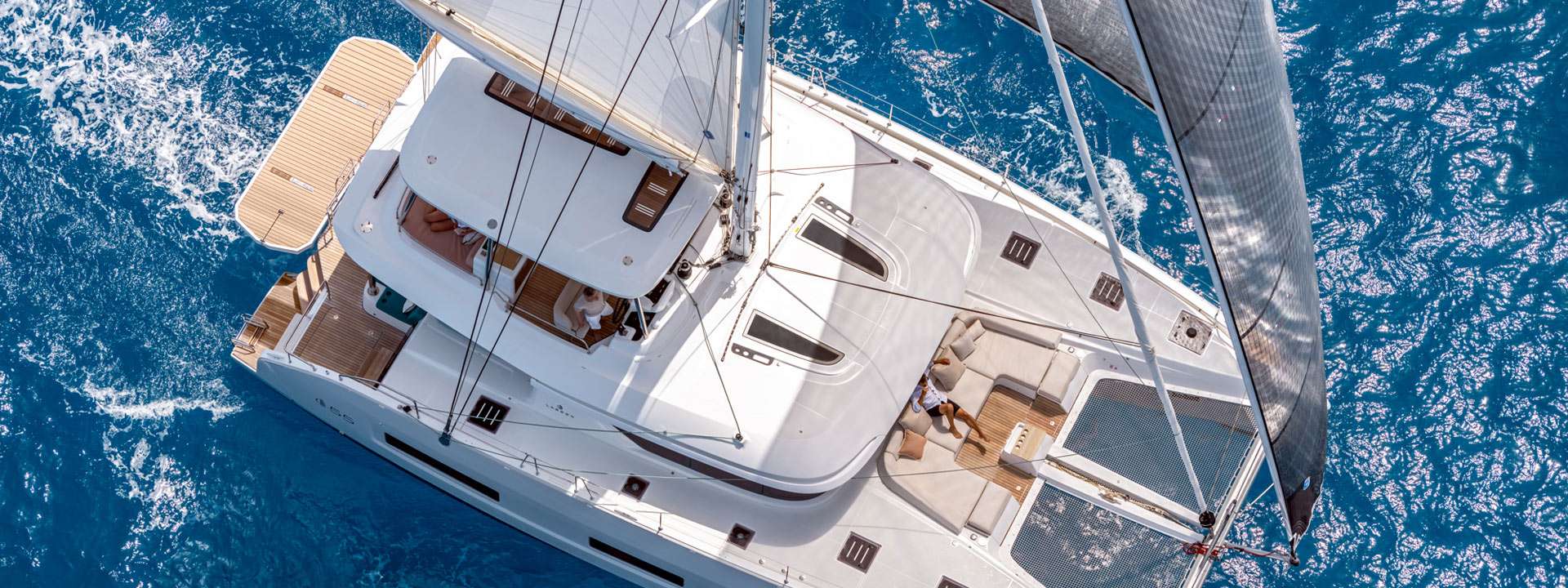 This brand-new Lagoon 55 with 4 double cabins, available for charter from Marina Kaštela, perfectly blends futuristic elegance with Lagoon's renowned comfort and design innovation. Created as a true terrace on the sea, “SEAS THE DAY" offers panoramic views, bright open spaces, and seamless indoor-outdoor living. Every detail reflects refined craftsmanship and smart functionality — from her teak decks and spacious flybridge to the light-filled salon and sophisticated cabins. Equipped with watermaker, waterpurifier, generator, air conditioning, and a fully equipped galley, she ensures complete comfort and freedom on board. Designed for families, friends, or small groups, Lagoon 55 “Seas The Day" guarantees your sailing experience along Croatia's breathtaking Adriatic coast is nothing but the best.