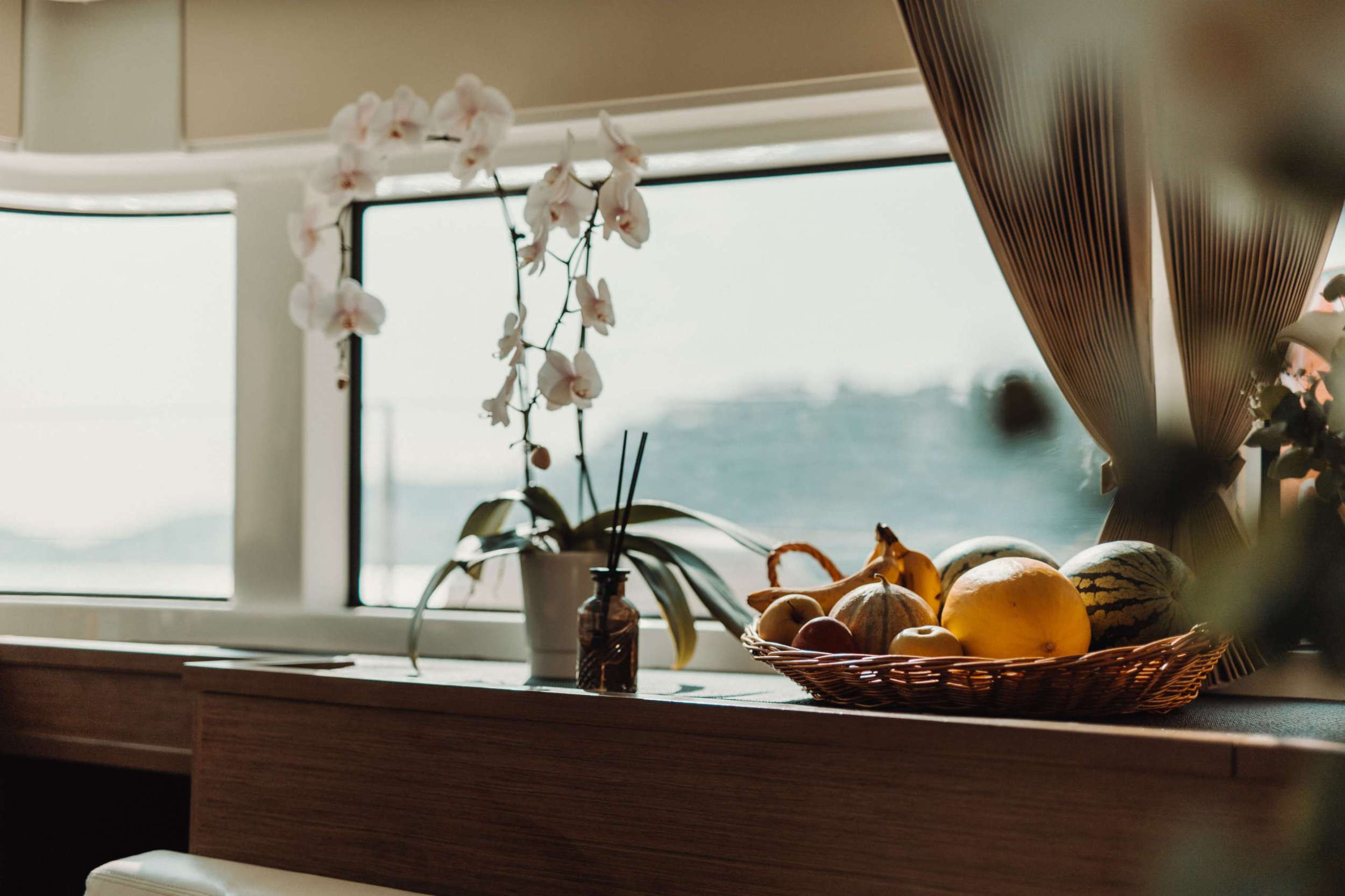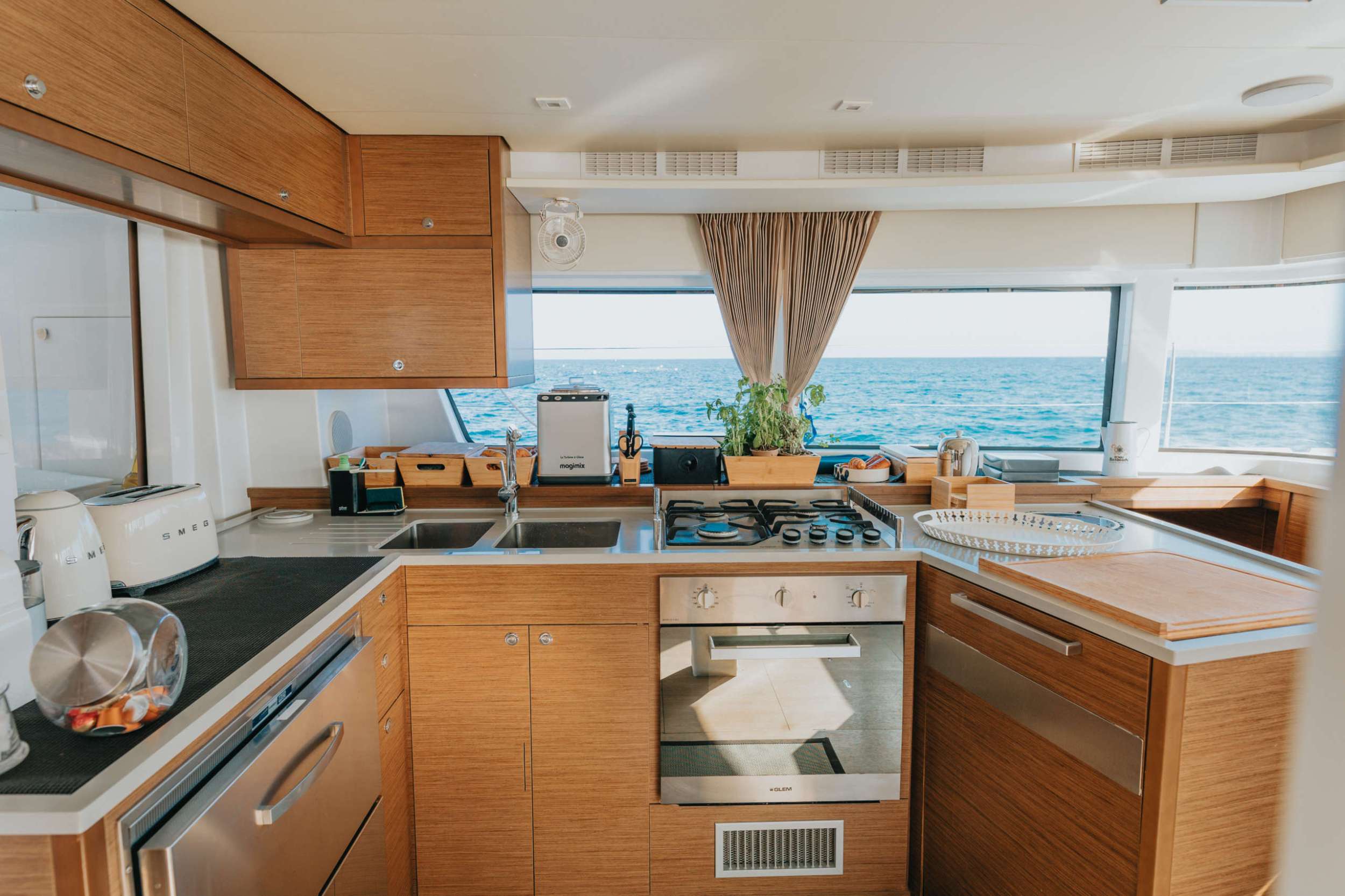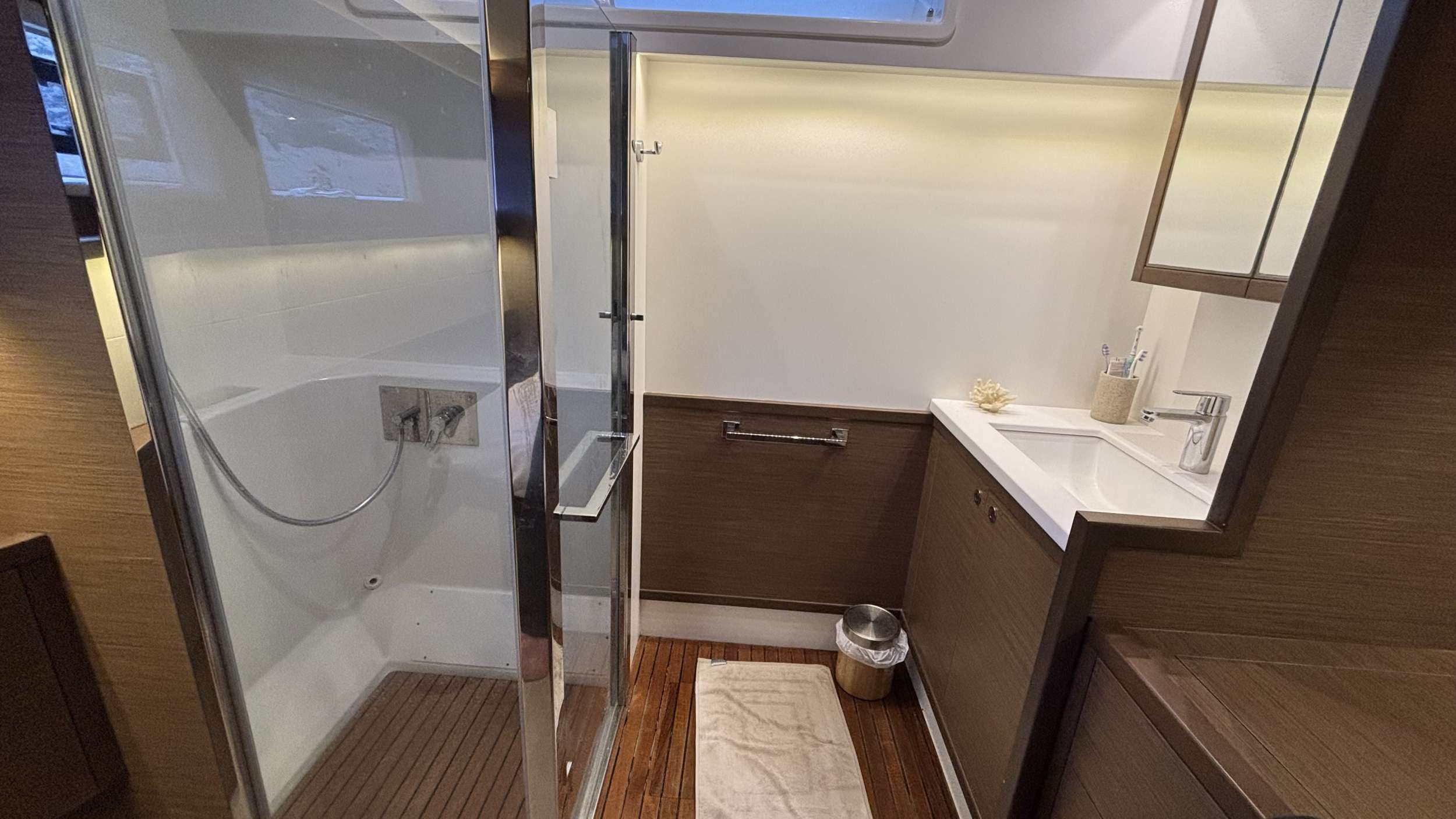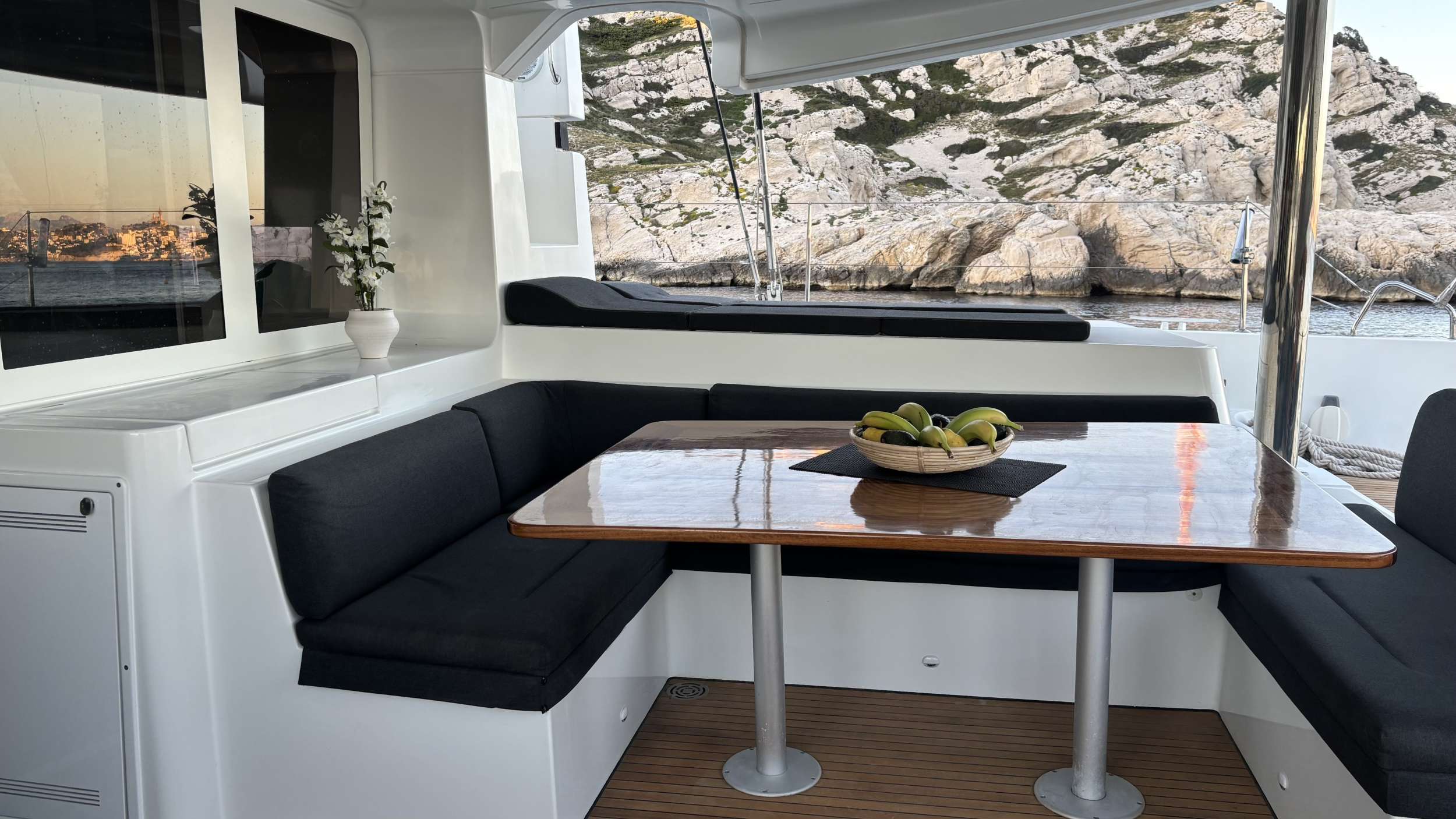 Lagoon 52 Sérénité boasts spacious volumes and great habitability for an outstanding life on board and ideal size for accessing secluded bays and coves. Her spacious exterior deck offers plenty of sunbathing space. The 4 double cabins, with ensuite bathrooms, are bathedin light thanks to the large portholes along the hulls.