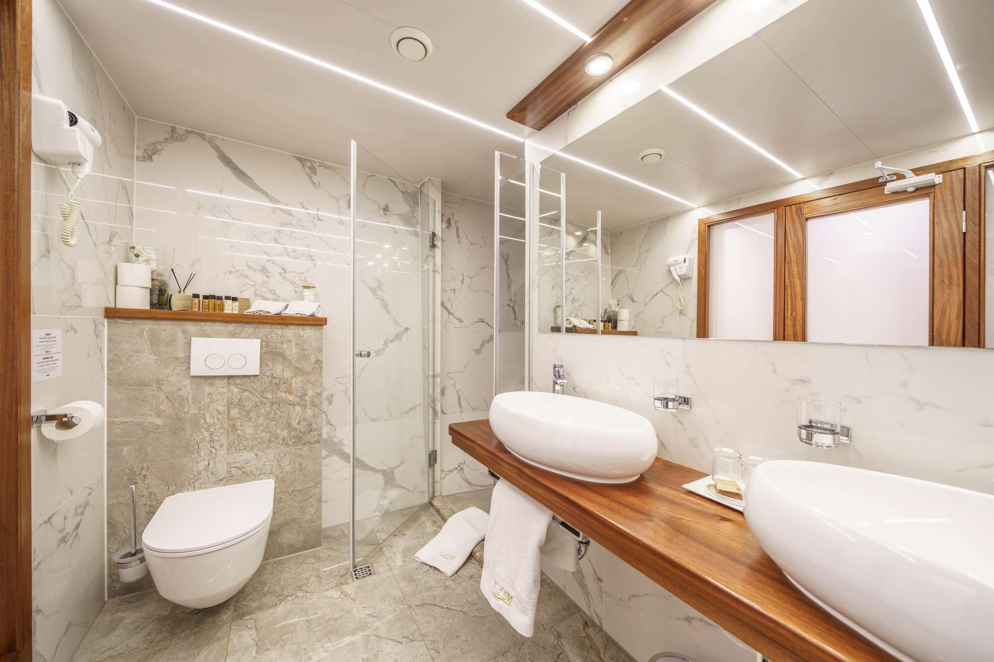 6 cabins, cabin configuration: 1 master 34 m2, King size bed 200x200 4 double 20m2 Queen size bed 180x200 1 twin 14m2 bed size(2) 100x200