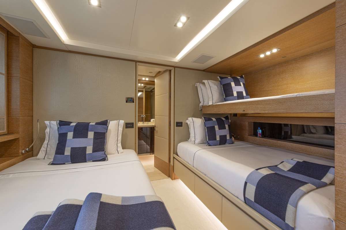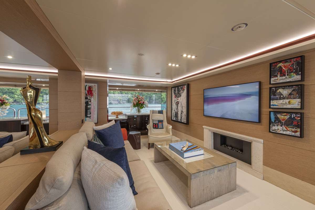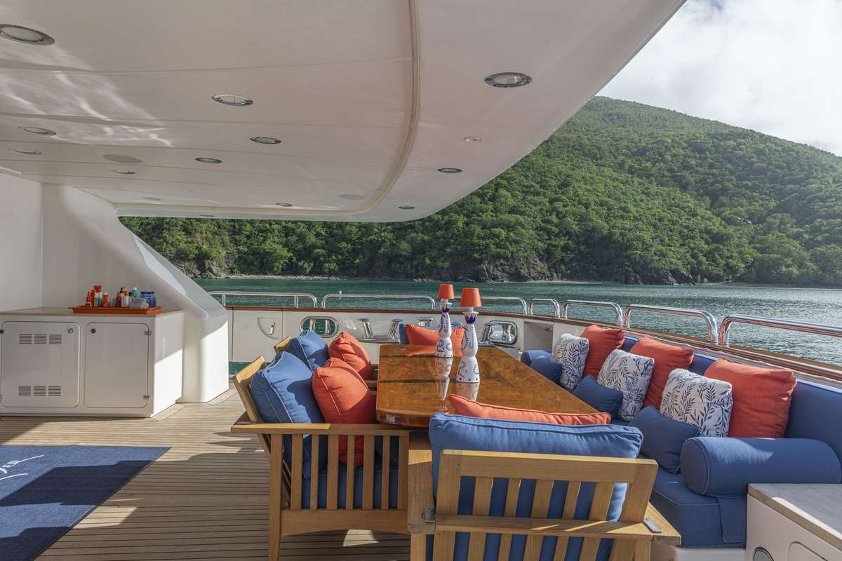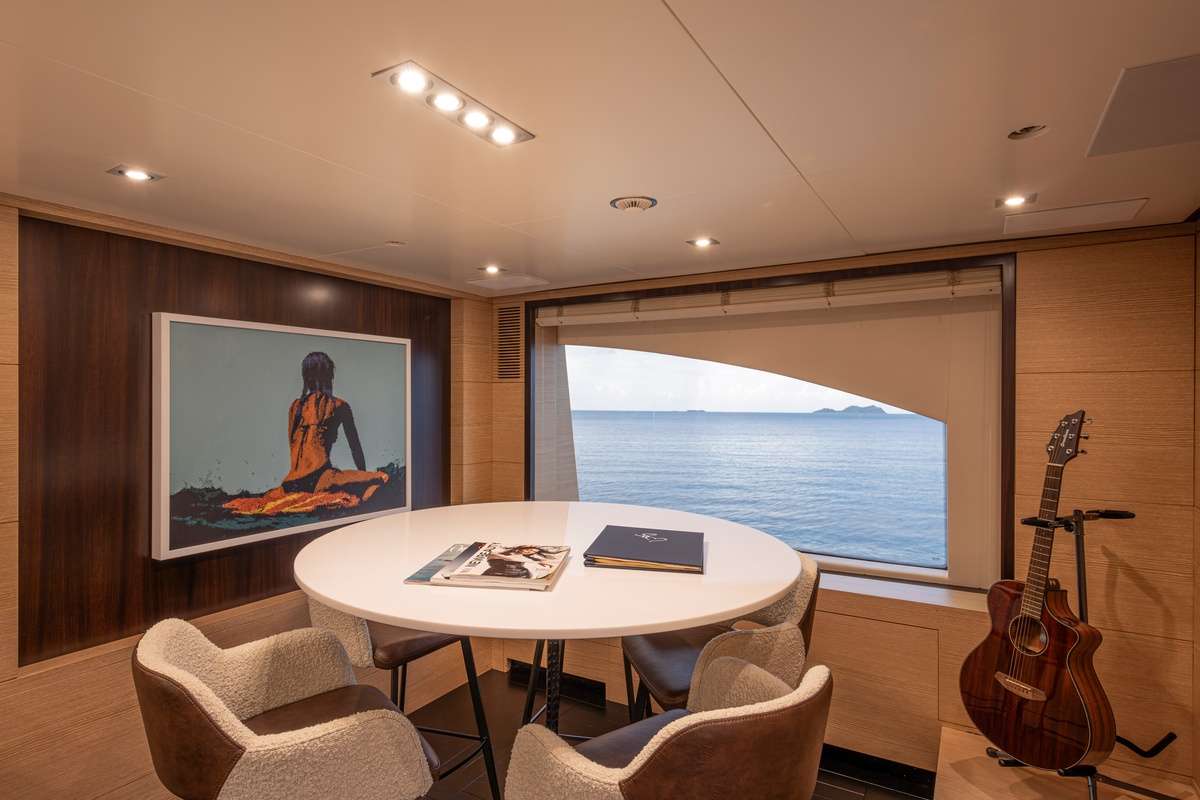 SUR LA MER is a striking 43.6m luxury superyacht crafted by the renowned Benetti shipyard in Italy. This opulent vessel boasts an elegant interior featuring limed oak panels, high-gloss wenge, and vibrant aqua blue accents. Accommodating up to 12 guests, SUR LA MER offers five exquisite cabins. The full-beam master suite, located on the main deck, is a masterpiece of design with its own office and lounge area, a spacious walk-in wardrobe, and a breathtaking en suite bathroom complete with a soaking bathtub. The master suite also provides direct access to a private foredeck terrace with inviting seating and a Jacuzzi. On the lower deck, there are four beautifully appointed guest cabins: two expansive VIP suites, one double cabin, and one twin cabin, each with additional Pullman berths perfect for children, and all featuring luxurious en suite shower rooms. The bridge deck sky lounge is a standout feature, offering cozy seating areas divided by a stylish bar. This lounge flows into a formal dining area encased by circular sliding doors, which can be opened to enhance the alfresco dining experience. One of SUR LA MER's most captivating features is the generous sun deck. Here, an oversized Jacuzzi is the centerpiece, complemented by sun loungers, cushioned sun pads, and a large dining table ideal for relaxed outdoor meals. The space is a guest favorite, with optional shade ensuring comfort at any time of day. For added convenience, the yacht is equipped with two tenders for swift trips ashore and access to a variety of water toys, including jetskis, a wakeboard, and an assortment of towable inflatables. This ensures that guests of all ages can enjoy fun-filled days from sunrise to sunset