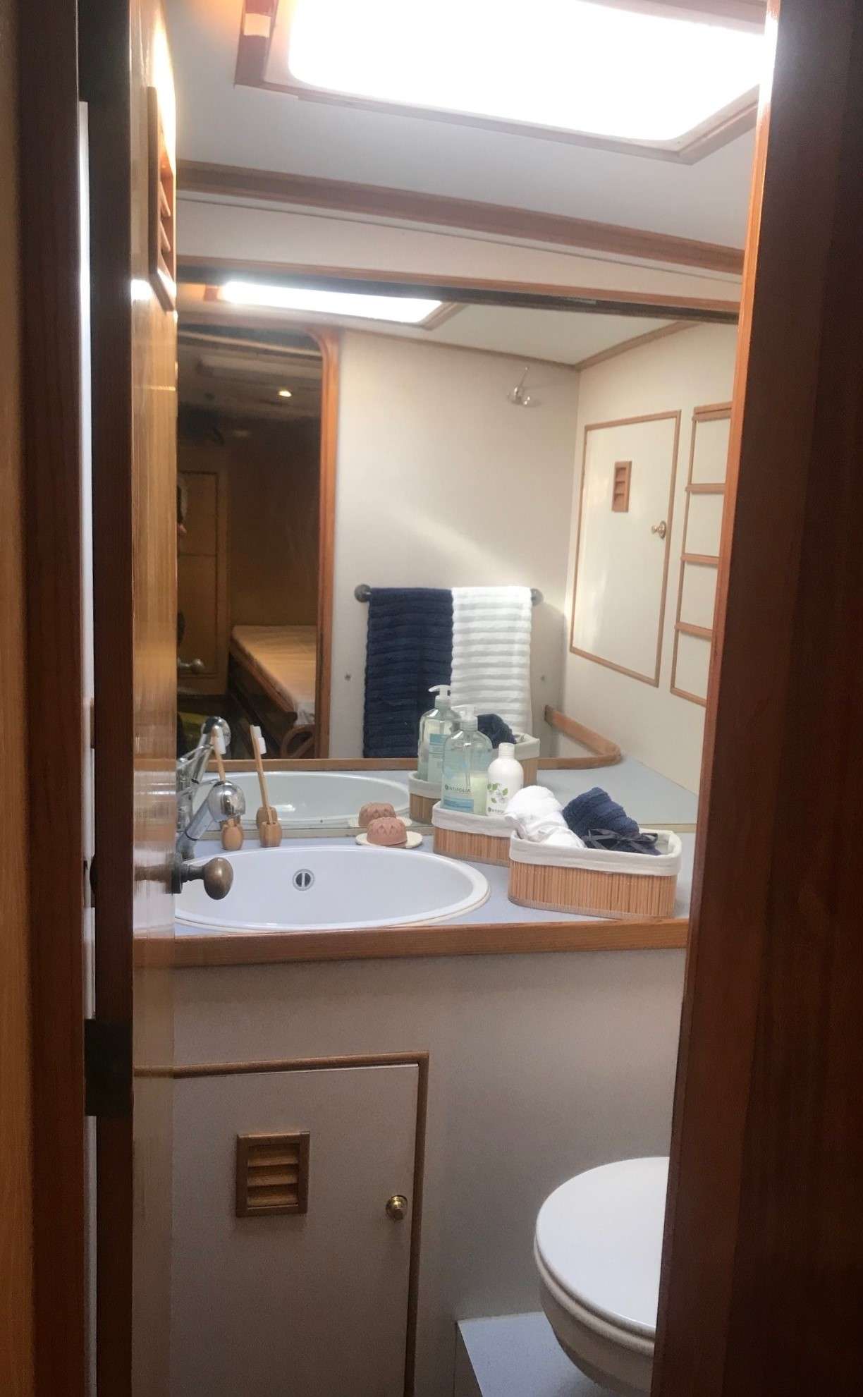 Tanana is an exceptional sailing boat A race-cruiser designed by Gilles Vaton, her 24-meters reinforced aluminium hull propelled by 280m2 of sails makes her a fast and safe sailing boat. Supported if necessary by a 250hp turbo engine, she can face all conditions serenely. 4 cabins, 3 bathrooms and a very large saloon can comfortably accommodate 8 people on board.
