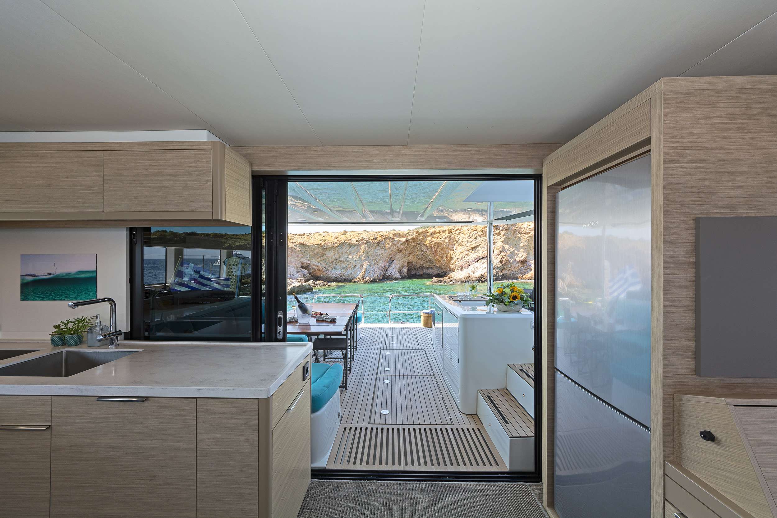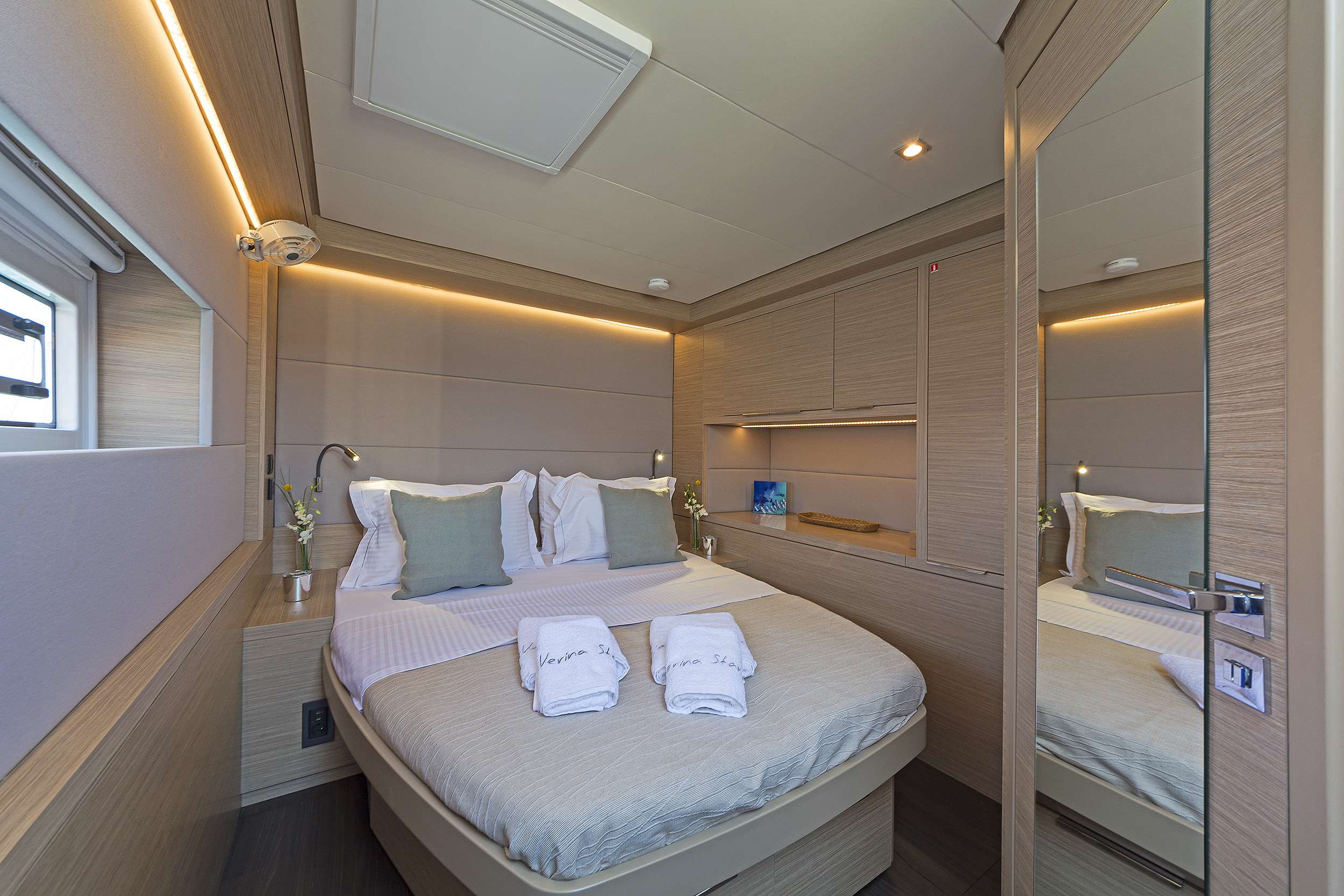 "Verina Star", this brand new 6-cabin Lagoon 55 combines so many great features along with plenty of room for gathering, dining, sunbathing, sleeping or even dancing, the Lagoon 55 has space for it all. Enjoy the splendor of the sea in all its glory as the Lagoon 55 is designed to maximize space and provide magnificent views throughout the yacht. The salon is spacious and modern optimized to invite natural light and in the cabins guests will feel as one with the sea blending in with the horizon. This catamaran creates a seamless connection between you and your surroundings bringing you piece and harmony. Last but not least you will have fun with the great variety of water toys and the tenderlift transforming into a bathing platform, an invitation for swimming and relaxing with your feet in the water.