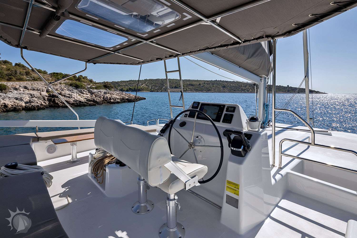 Step aboard the 2023 48-foot Dufour Catamaran, thoughtfully designed to host up to eight guests in four queen cabins. Its perfectly balanced layout—dividing the deck plan, cockpit, flybridge, and foredeck into equal thirds—creates a harmonious flow between indoor and outdoor living in every season. At the bow, two expansive sunbathing areas offer prime spots for soaking up warm rays and gentle sea breezes. Ascend twin stairways to the generous flybridge, where a low central table is surrounded by plush seating and broad sunpads beneath a protective bimini—an idyllic perch for panoramic views or relaxed afternoons at sea. Aft, the cockpit unfolds like an open-air living room, featuring a teak dining table for eight, multiple seating and relaxation zones, and a built-in gas plancha for effortless alfresco dining. Large portholes flood the lower salon with natural light, and a sliding window door opens fully to merge cockpit and indoor lounge into one seamless entertainment space. Inside, the open-plan salon invites convivial gatherings beneath a 360° sea-facing panorama, while the fully equipped, ergonomic galley flows naturally towards the cockpit. A versatile sofa-dining unit adapts from cozy lounge to elegant table or even an extra double berth, and wide wraparound windows bathe the interior in warm daylight. Below decks, four queen cabins each enjoy private dual-entry access from port and starboard, ensuring maximum guest privacy. Every stateroom boasts its own ensuite with separate shower, generous storage, and thoughtfully placed portlights for excellent ventilation and brightness—creating serene retreats for restorative nights at sea.
