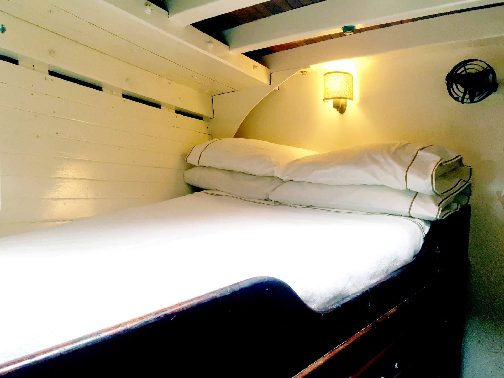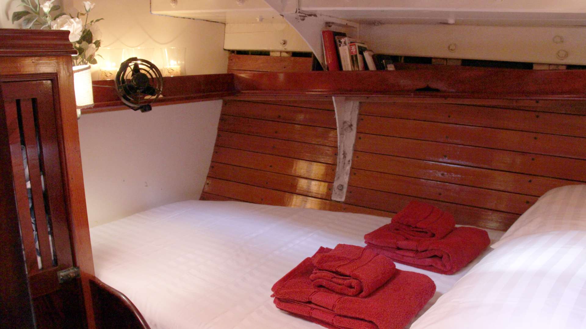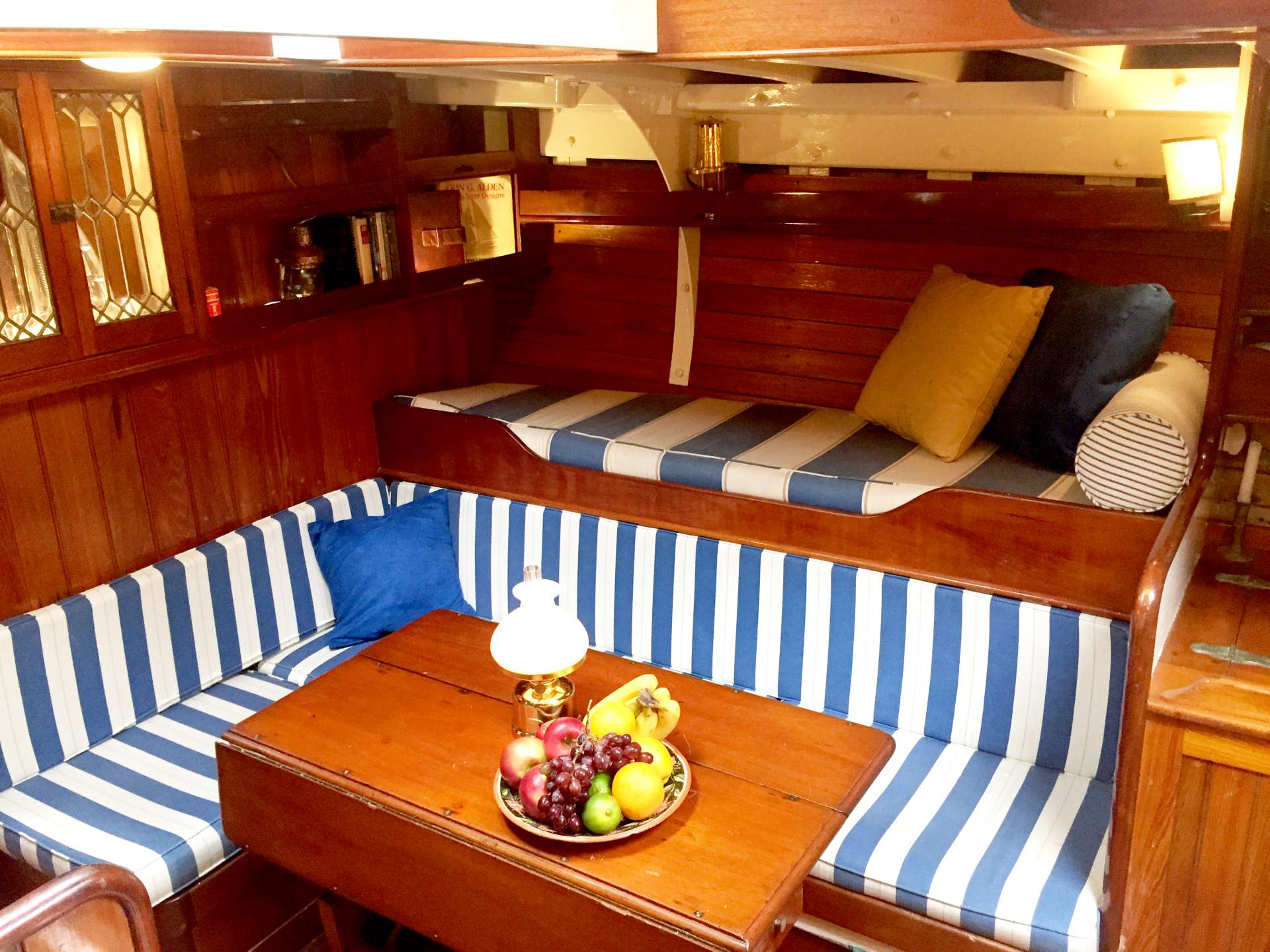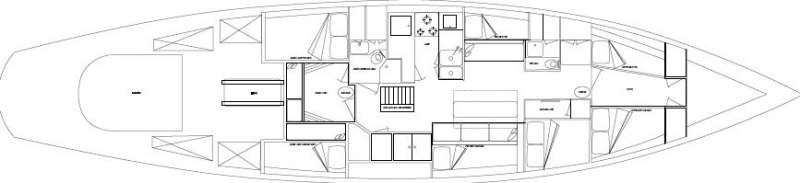 Master Cabin: Double berth to port, single berth to starboard, access to ensuite. Large overhead hatch creates a light, airy cabin. Starboard Cabin: Cosy double berth with plenty of storage space Focsle: One wide-single and one single bunk, both with privacy curtains. Large overhead hatch makes a light, airy space