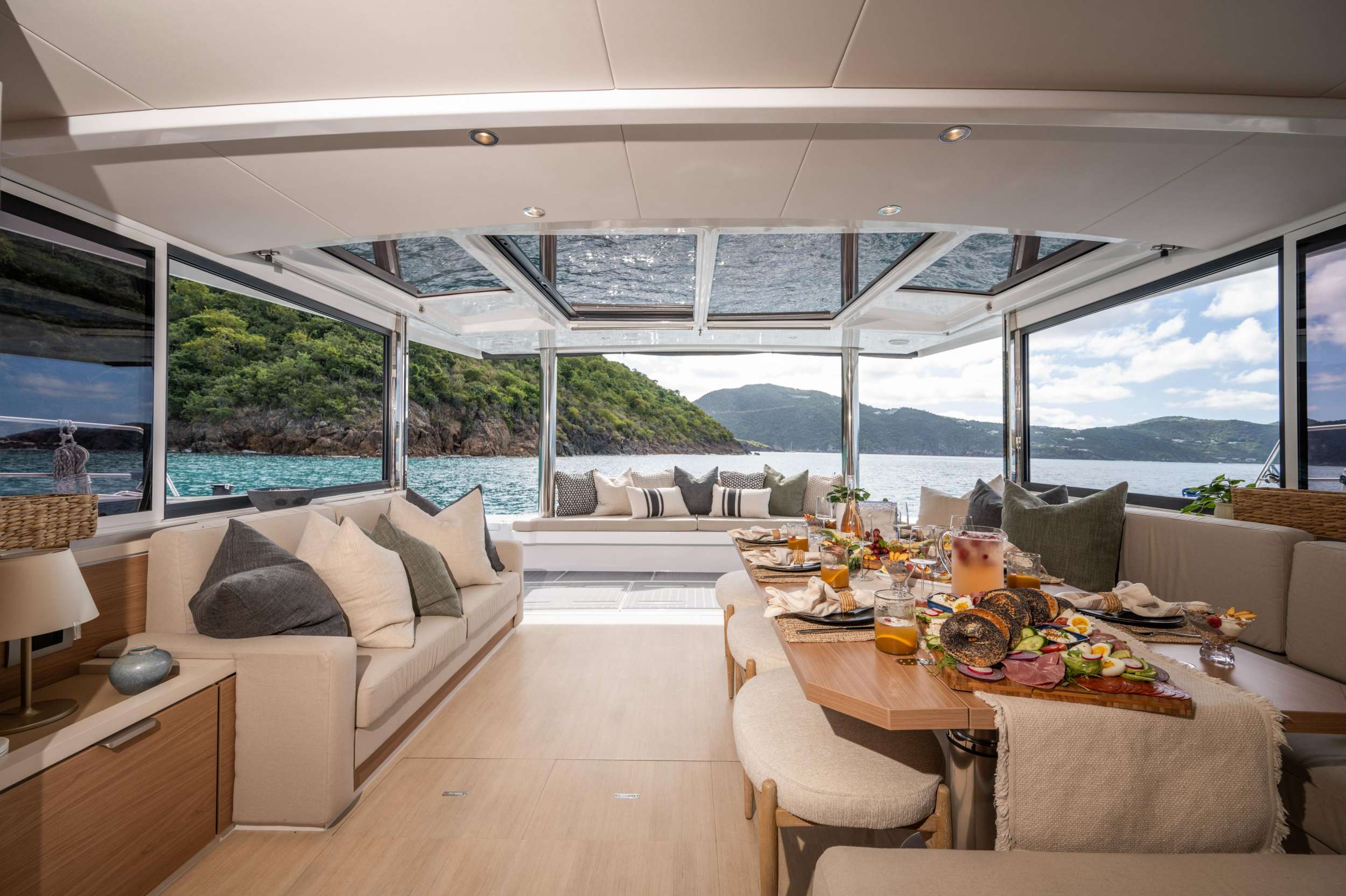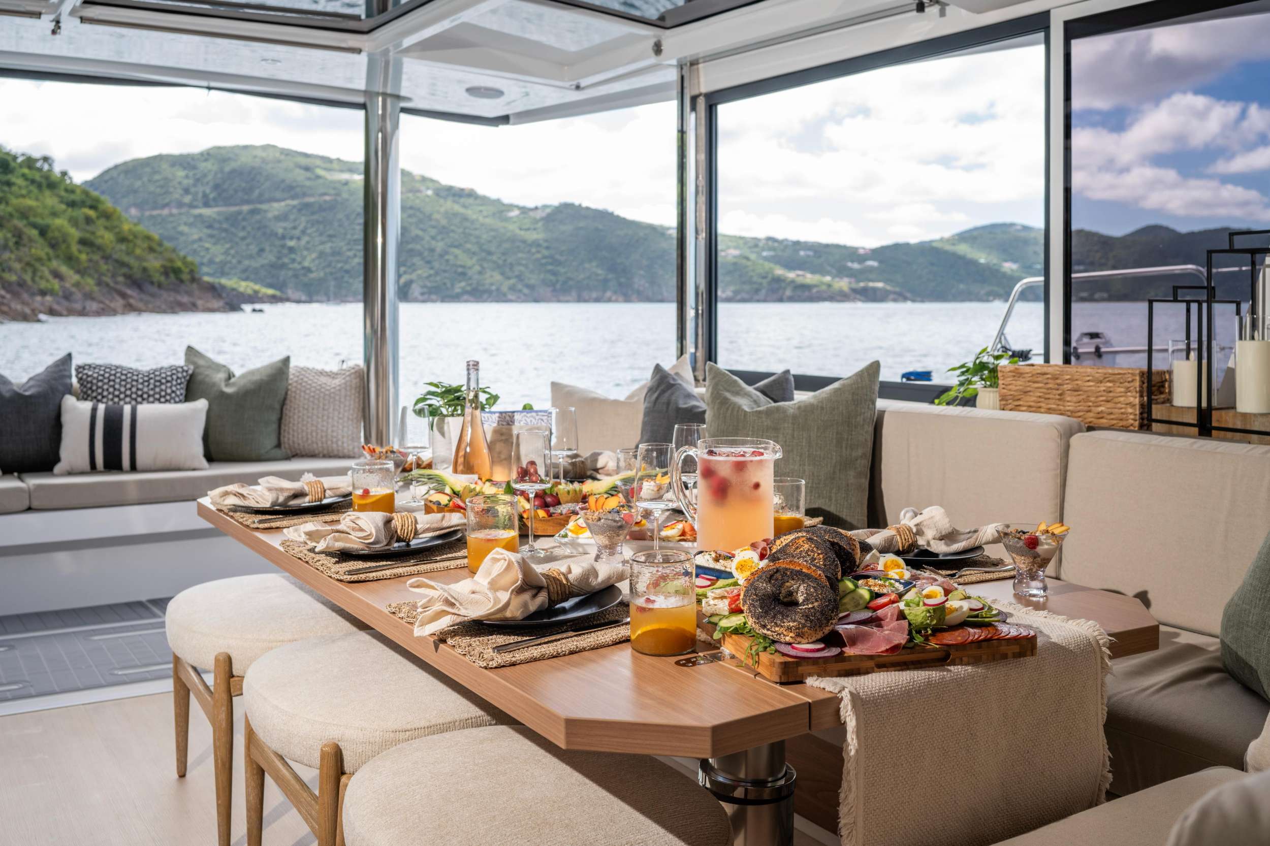 Whiskey Sunset will accommodate 8 charter guests in 3 spacious queen cabins and 1 sprawling master cabin for those who desire more space. She is a 2025 sailing catamaran offering a 60hp dingy, hydraulic lift, hard top, SeaDek, solar panels, air conditioning, water maker, ice maker, full sized refrigerator, a fully customizable menu, ecofriendly and reef safe toiletries, a well-stocked ship's bar, and a coffee/espresso machine. Also, guests can enjoy snorkeling, and the many cool water toys like the underwater scooters, subwing, kneeboard, 2 stand up paddle boards, wakeboard, water ski tubes, 10 ft. floating dock, and fishing gear. You'll also find board and card games, a salon television, and a Fusion 3 Bluetooth-enabled sound system.