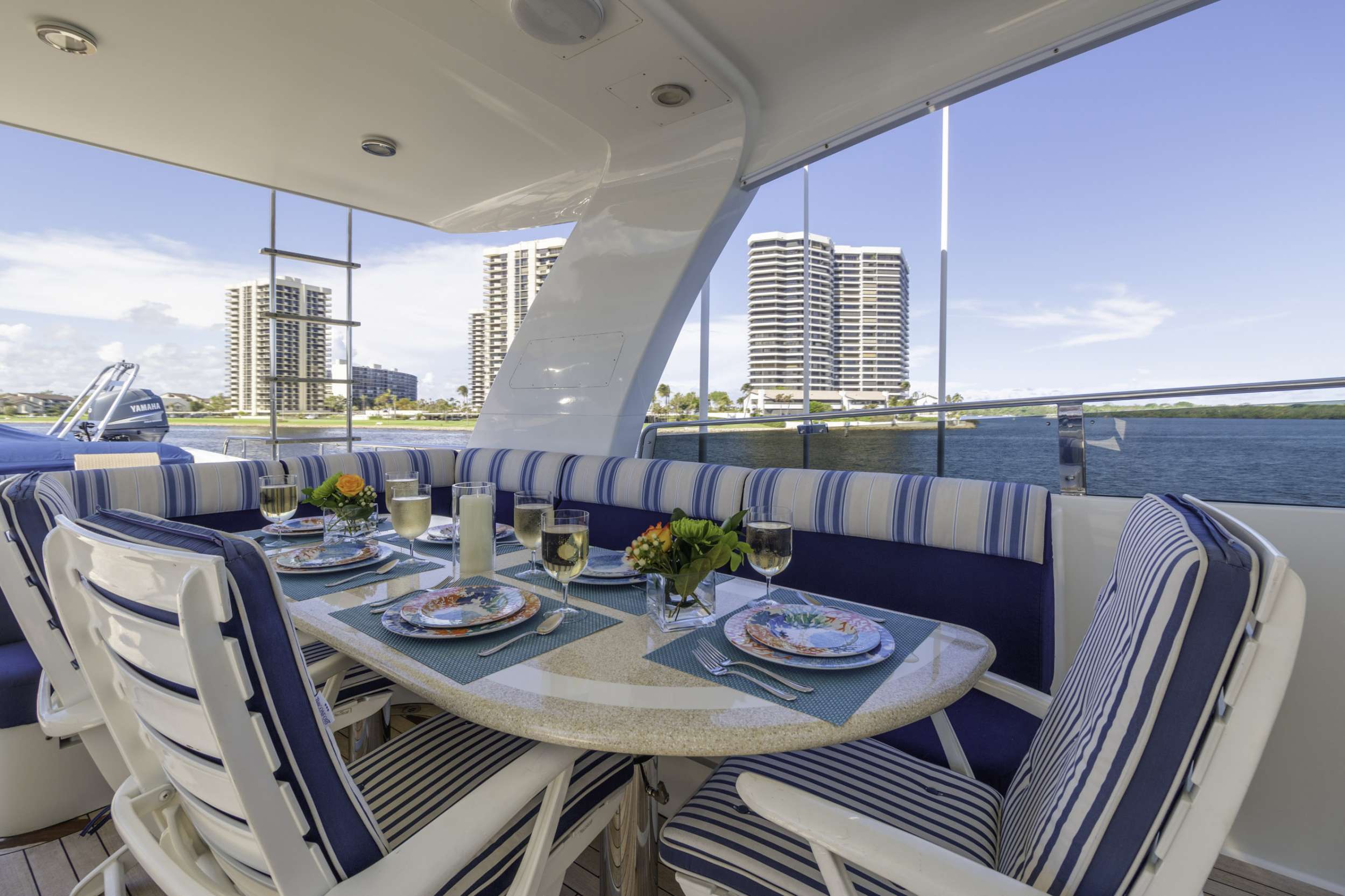 WINDWARD is a well-appointed 3 stateroom motor yacht with fantastic space inside and out. Her expansive aft deck is perfect for al fresco dining. She also features a generous sundeck with a sizzling barbeque for those sunny summer days. She offers three plush bunny pads on the bow, allowing for panoramic ocean views. She boasts a full-beam owner's stateroom with a King Size bed, double en suite bath, and storage. Guest suites include one Queen and one Twin stateroom. Her large salon and dining area feature a full wet bar to prepare those pre-dinner cocktails. Whilst her experienced Captain and excellent crew will ensure that you have a trip to remember.