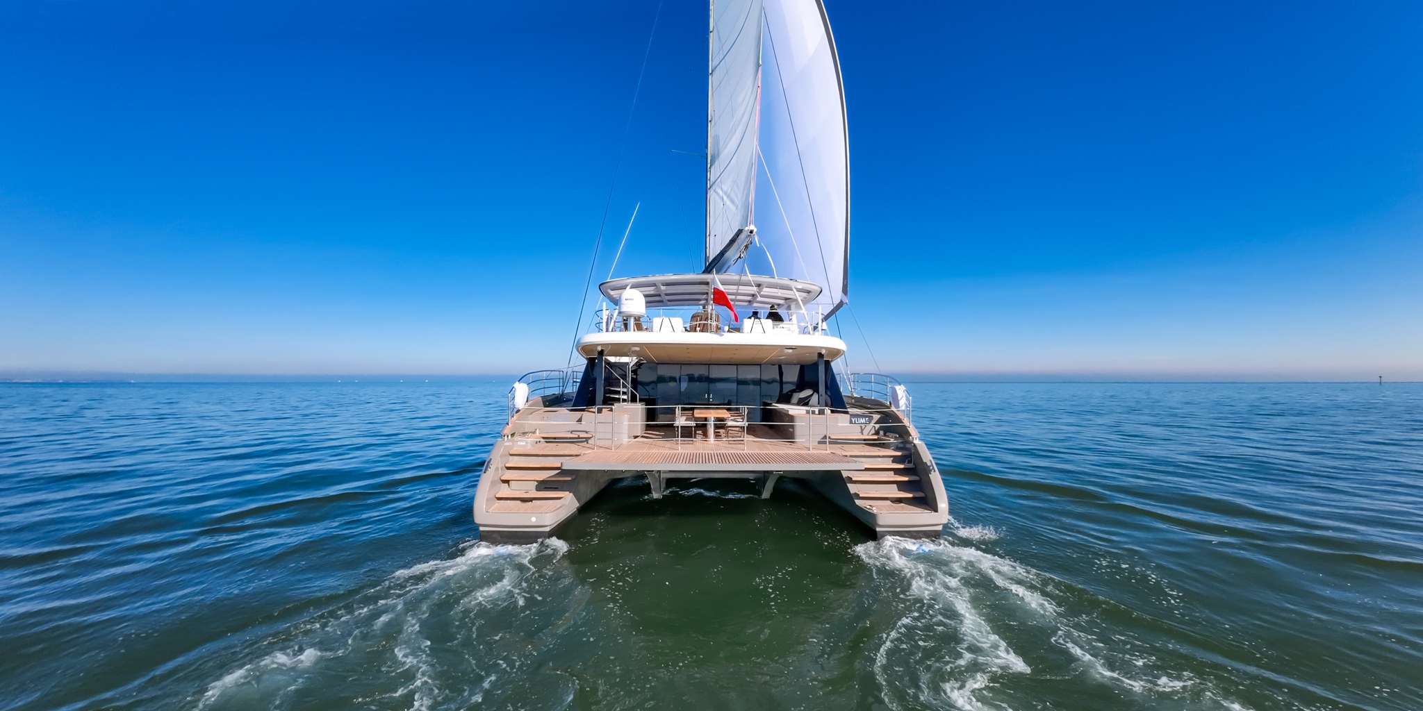 Pure representation of luxury, YLIME is a brand new Sunreef 60 full of character that will be sailing in Corsica. With a splendid layout and modern amenities, space has been skillfully organized to accommodate various areas to unwind or spend time together. A set of refined textures combined with delicate marble accents create a pleasant atmosphere on board. YLIME is fitted with 4 en-suite cabins with a soothing colour palette, accommodating up to 8 guests. The vast master cabin is located on the port side and offers plenty of dressing space as well as a large bathroom. To starboard there are 3 comfortable guest cabins, all with queen beds. On the main deck, the galley up layout with dining space for everyone on the opposite side generates a homely ambience. The catamaran's large exterior spaces host numerous sunpads on the deck, whether on the front terrace or on the flybridge, ensuring unlimited relaxation possibilities. The aft deck boasts a cosy alfresco dining area and a spacious hydraulic swimming platform. With her state-of-the-art equipment for water sports and a professional crew of 3, YLIME will surpass all charter expectations.