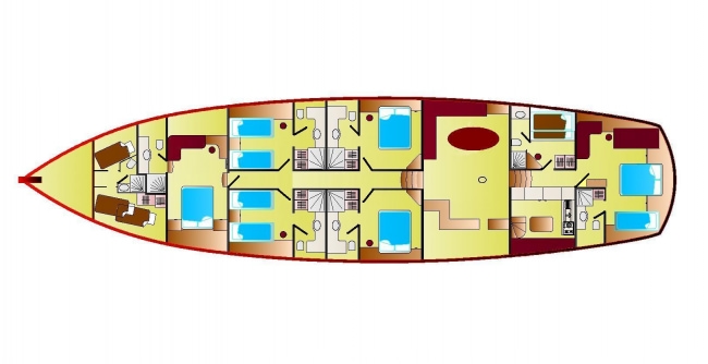 2 master cabins 2 double staterooms 2 twin staterooms which could convert into doubles upon request